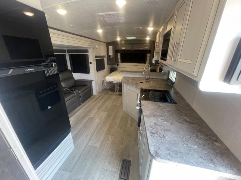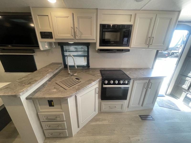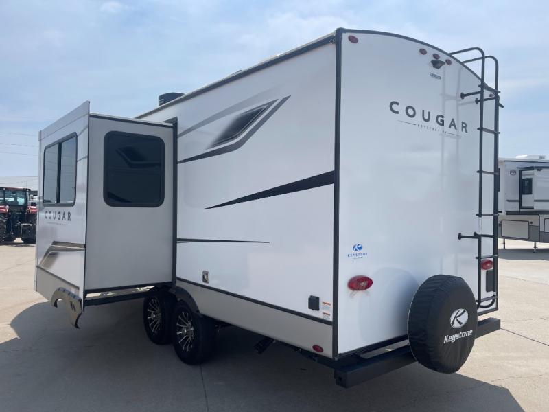 The Keystone Cougar Half-Ton fifth wheel and travel trailers are known as one of America's favorites for a reason! Some of those reasons are the exclusive features that come from Keystone, like the Winegard Air 360+ omni-directional rooftop antenna, the in-floor heating ducts, and the Hyper Deck flooring. The Cougar Half-Ton has a Climate Guard protection package to keep you safe during inclement weather, along with two roof attic vents, PEX plumbing and more. Use the 21" Furrion range with Piezo ignition to create all of those familiar meals from home, and enjoy endless hot showers with the Girard tankless on-demand water heater!