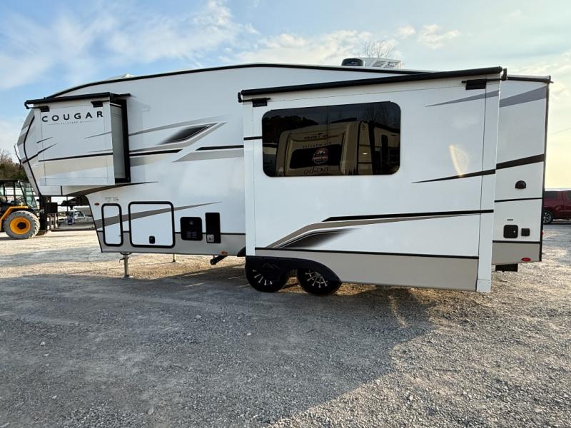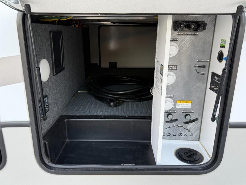 The Keystone Cougar Half-Ton fifth wheel and travel trailers are known as one of America's favorites for a reason! Some of those reasons are the exclusive features that come from Keystone, like the Winegard Air 360+ omni-directional rooftop antenna, the in-floor heating ducts, and the Hyper Deck flooring. The Cougar Half-Ton has a Climate Guard protection package to keep you safe during inclement weather, along with two roof attic vents, PEX plumbing and more. Use the 21" Furrion range with Piezo ignition to create all of those familiar meals from home, and enjoy endless hot showers with the Girard tankless on-demand water heater!