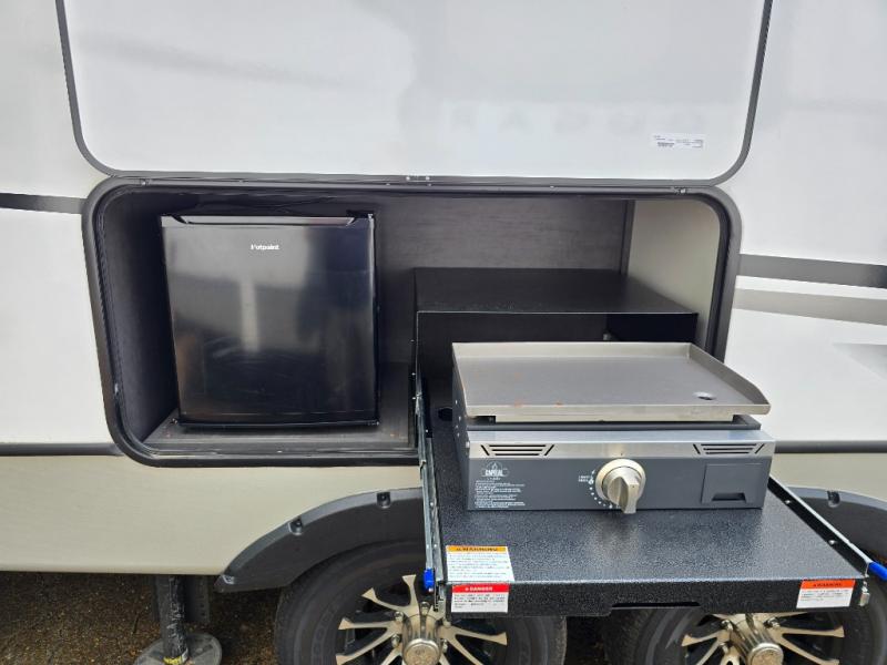If you could cook outside or inside, which would it be? With this Cougar Half-Ton travel trailer, you get to decide that each time you make a meal. The outdoor grill and mini refrigerator are a great convenience while you play outside, and the interior kitchen pantry is located right next to the main entry door for quick access. You also have a second entry door that is located in the master bedroom, as an added convenience. The main living area offers you plenty of seating and dining space with its 68" tri-fold sleeper sofa and booth dinette. You will surely enjoy sleeping on your own king bed at night and closing the door for privacy when you have overnight guests.