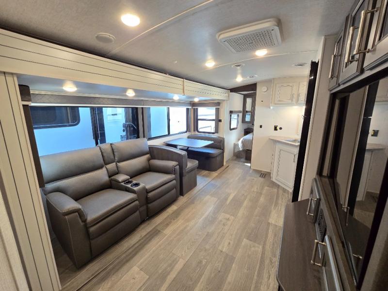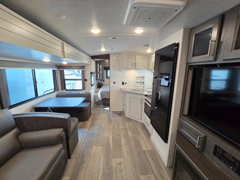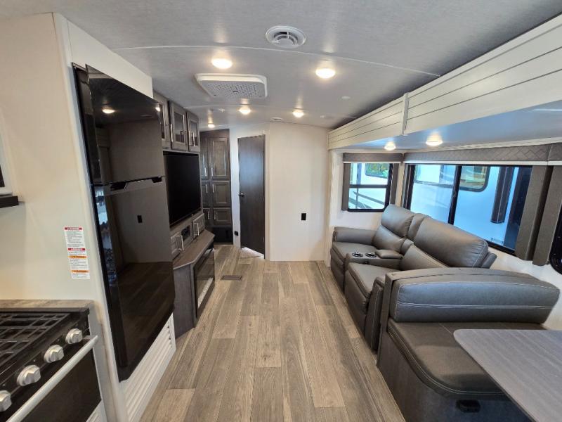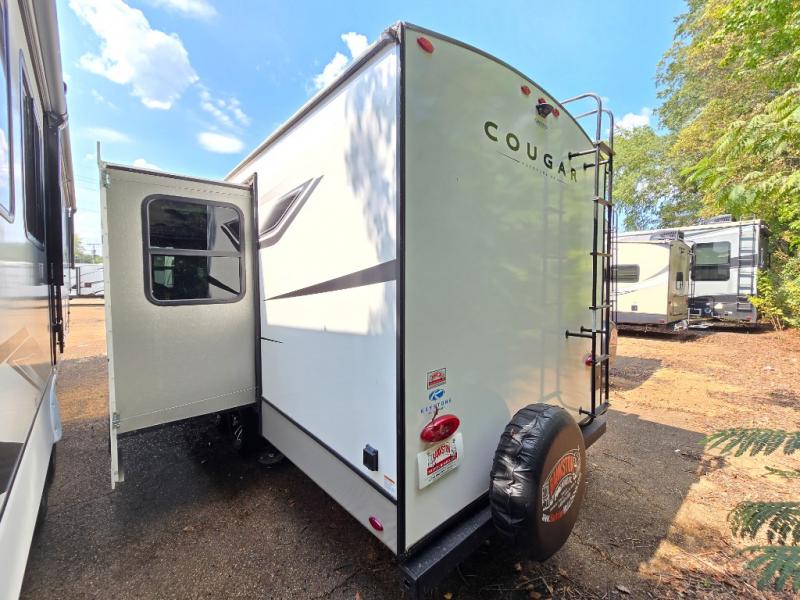 The Keystone Cougar Half-Ton fifth wheel and travel trailers are known as one of America's favorites for a reason! Some of those reasons are the exclusive features that come from Keystone, like the Winegard Air 360+ omni-directional rooftop antenna, the in-floor heating ducts, and the Hyper Deck flooring. The Cougar Half-Ton has a Climate Guard protection package to keep you safe during inclement weather, along with two roof attic vents, PEX plumbing and more. Use the 21" Furrion range with Piezo ignition to create all of those familiar meals from home, and enjoy endless hot showers with the Girard tankless on-demand water heater!