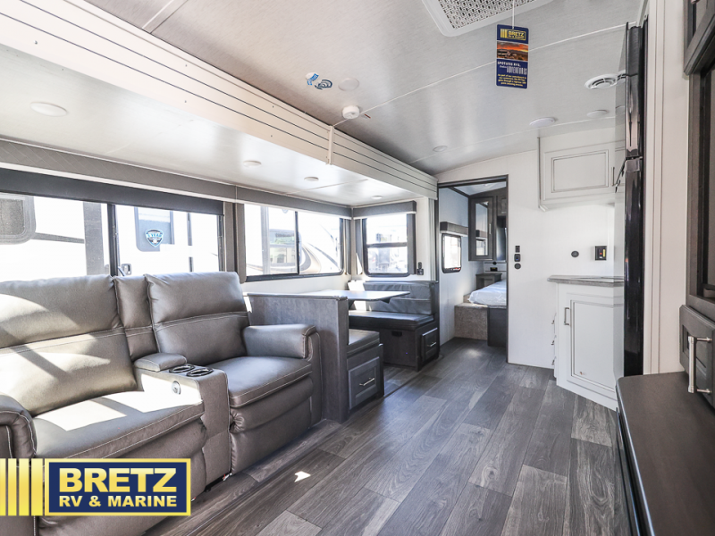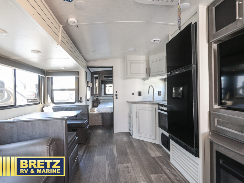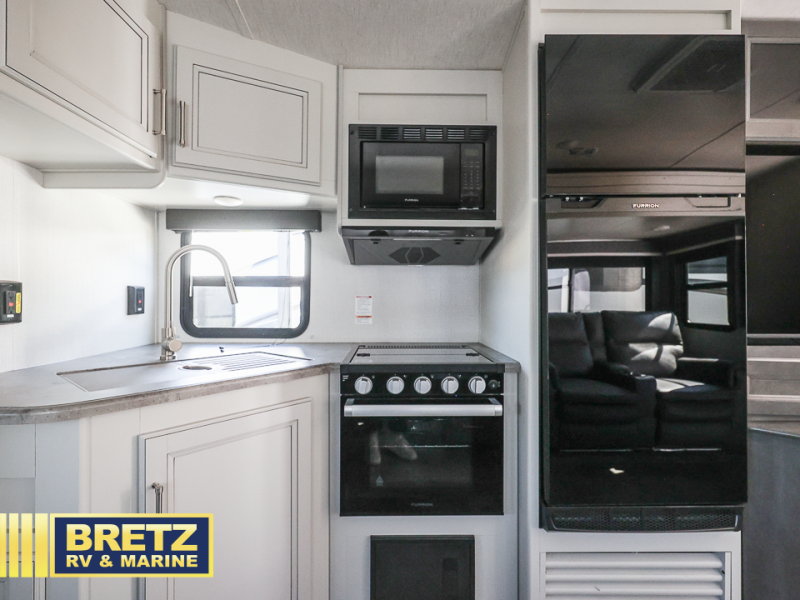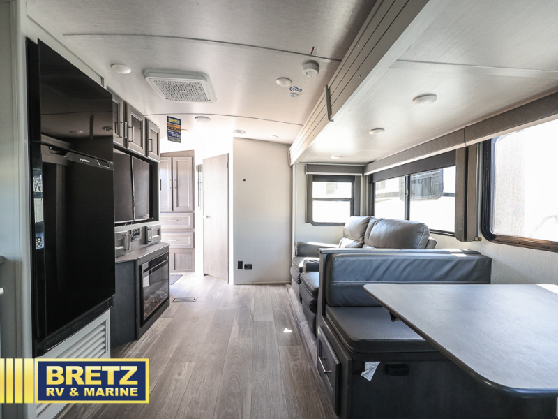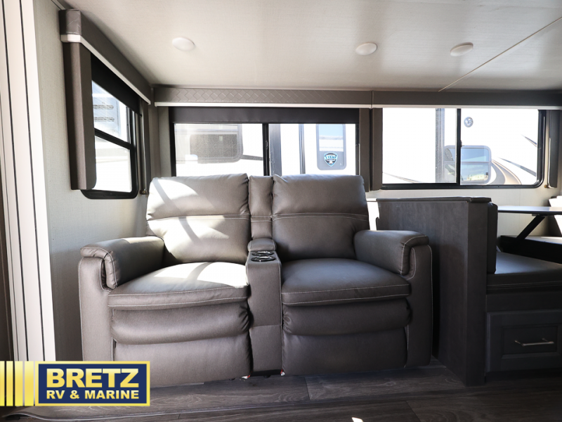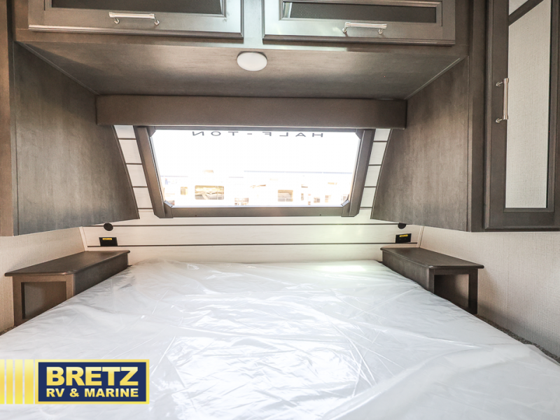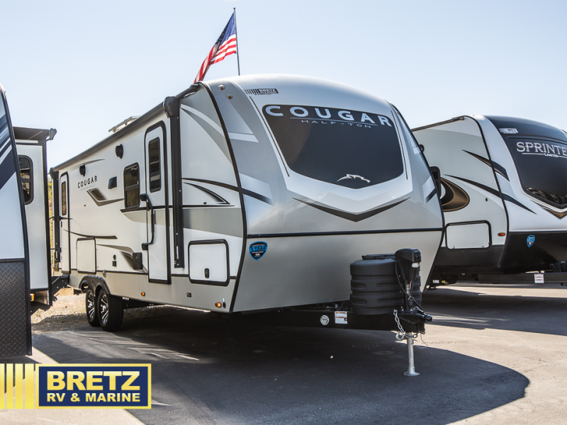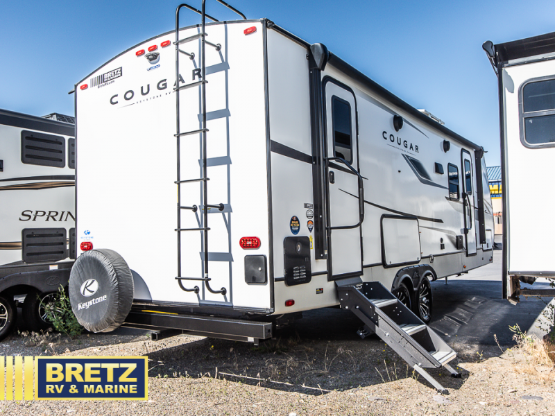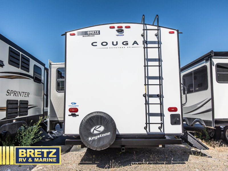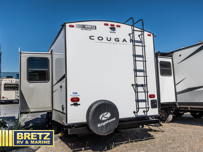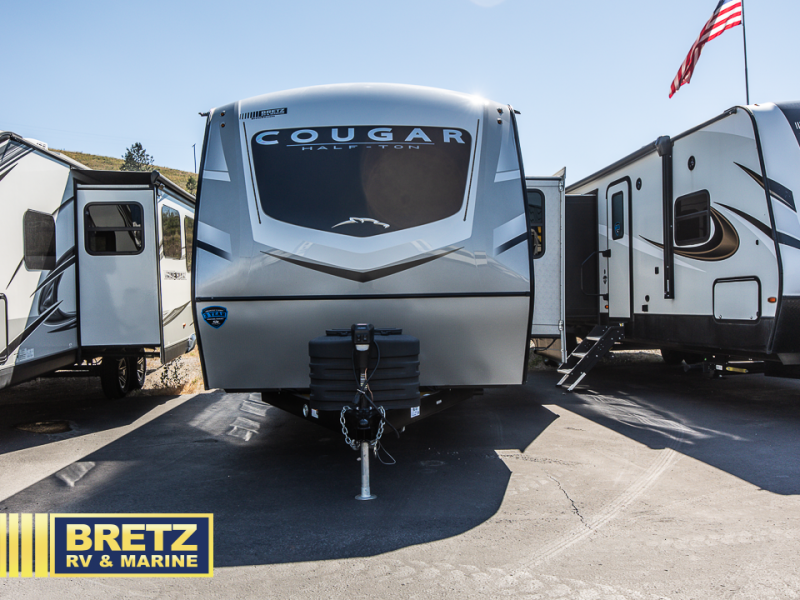 The Keystone Cougar Half-Ton fifth wheel and travel trailers are known as one of America's favorites for a reason! Some of those reasons are the exclusive features that come from Keystone, like the Winegard Air 360+ omni-directional rooftop antenna, the in-floor heating ducts, and the Hyper Deck flooring. The Cougar Half-Ton has a Climate Guard protection package to keep you safe during inclement weather, along with two roof attic vents, PEX plumbing and more. Use the 21" Furrion range with Piezo ignition to create all of those familiar meals from home, and enjoy endless hot showers with the Girard tankless on-demand water heater!