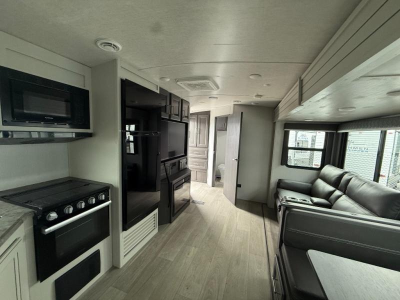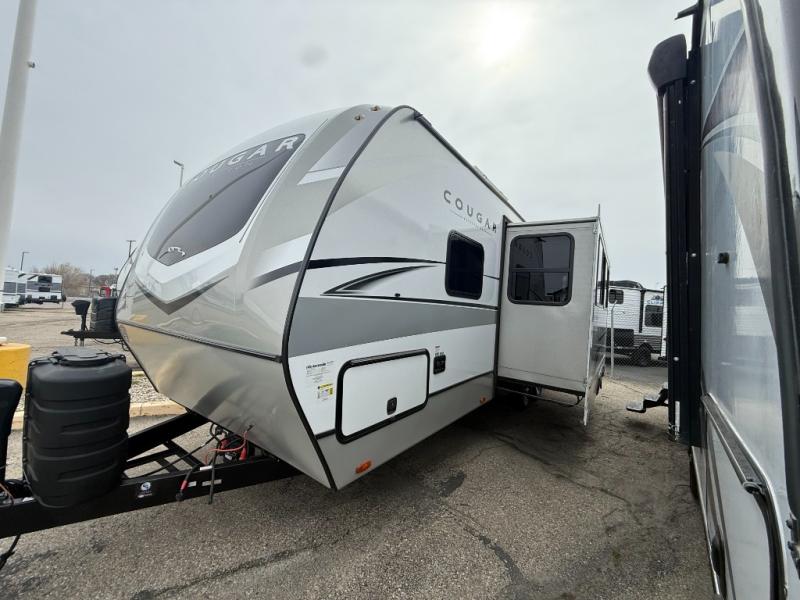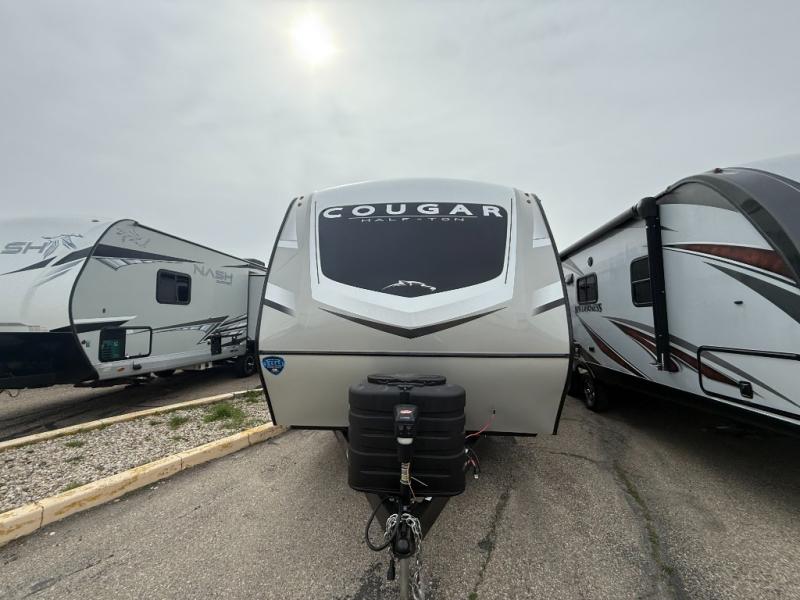 The Keystone Cougar Half-Ton fifth wheel and travel trailers are known as one of America's favorites for a reason! Some of those reasons are the exclusive features that come from Keystone, like the Winegard Air 360+ omni-directional rooftop antenna, the in-floor heating ducts, and the Hyper Deck flooring. The Cougar Half-Ton has a Climate Guard protection package to keep you safe during inclement weather, along with two roof attic vents, PEX plumbing and more. Use the 21" Furrion range with Piezo ignition to create all of those familiar meals from home, and enjoy endless hot showers with the Girard tankless on-demand water heater!