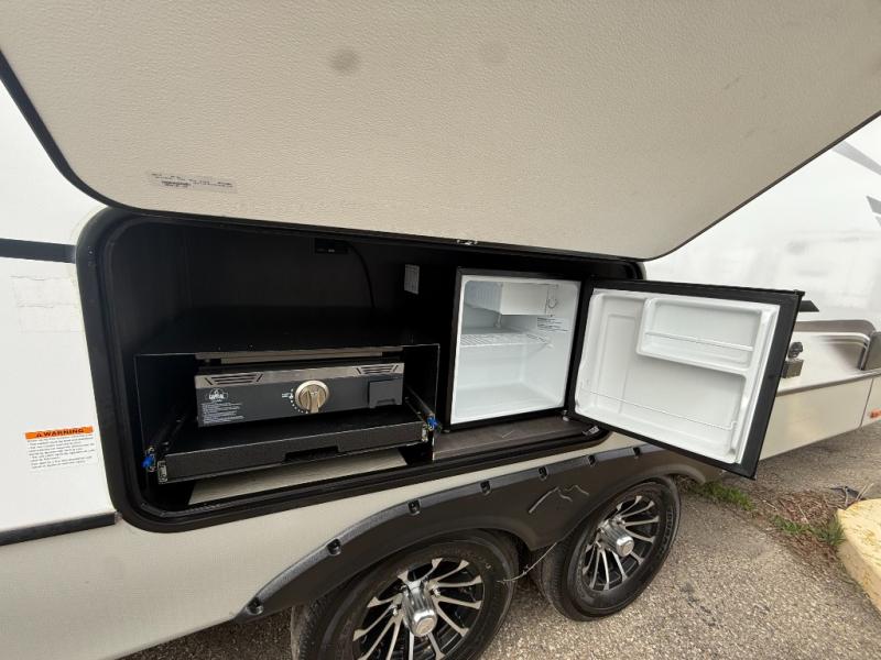 If you could cook outside or inside, which would it be? With this Cougar Half-Ton travel trailer, you get to decide that each time you make a meal. The outdoor grill and mini refrigerator are a great convenience while you play outside, and the interior kitchen pantry is located right next to the main entry door for quick access. You also have a second entry door that is located in the master bedroom as an added convenience. The main living area offers you plenty of seating and dining space with its 68" tri-fold sleeper sofa and booth dinette. You will surely enjoy sleeping on your own king bed at night and closing the door for privacy when you have overnight guests.