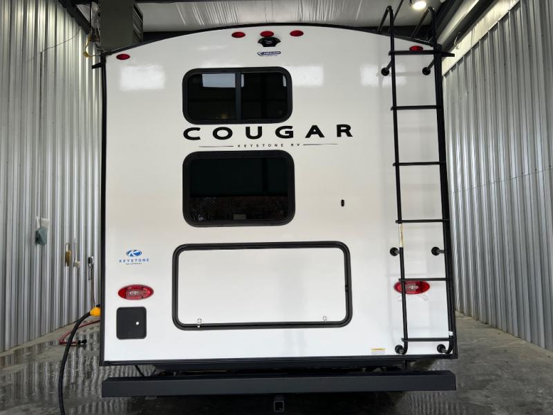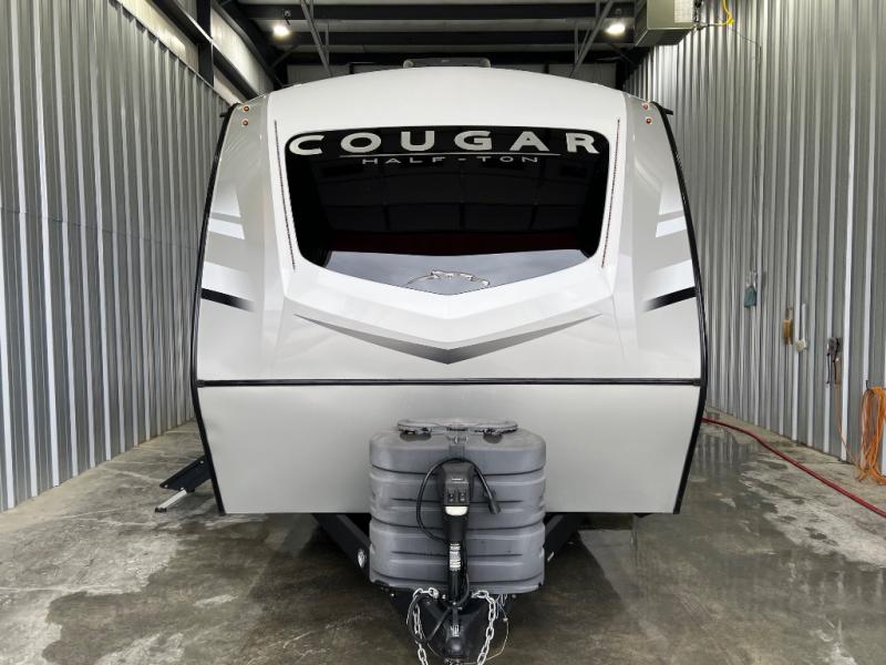 The Keystone Cougar Half-Ton fifth wheel and travel trailers are known as one of America's favorites for a reason! Some of those reasons are the exclusive features that come from Keystone, like the Winegard Air 360+ omni-directional rooftop antenna, the in-floor heating ducts, and the Hyper Deck flooring. The Cougar Half-Ton has a Climate Guard protection package to keep you safe during inclement weather, along with two roof attic vents, PEX plumbing and more. Use the 21" Furrion range with Piezo ignition to create all of those familiar meals from home, and enjoy endless hot showers with the Girard tankless on-demand water heater!