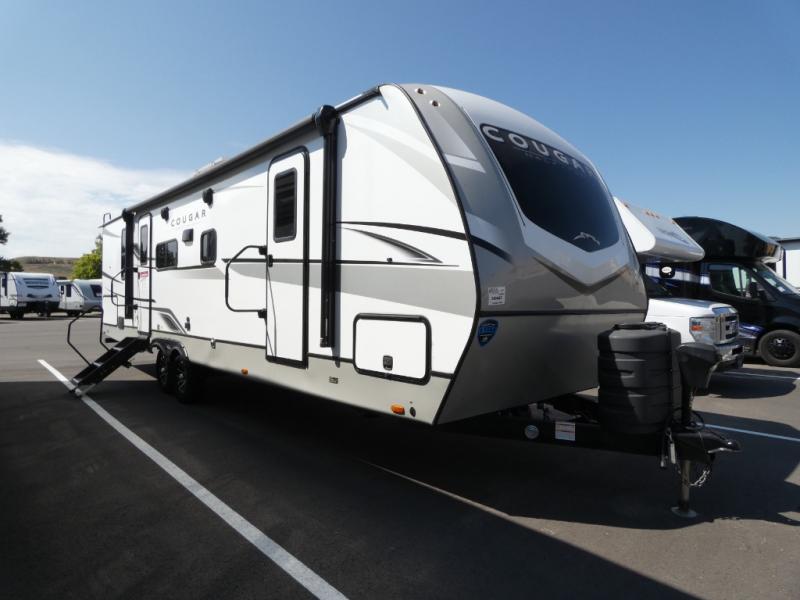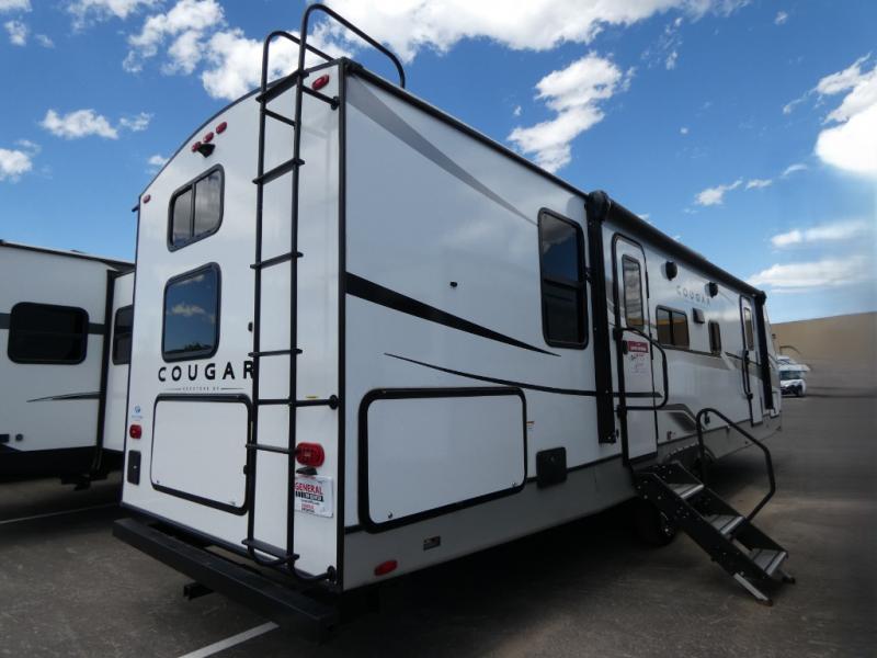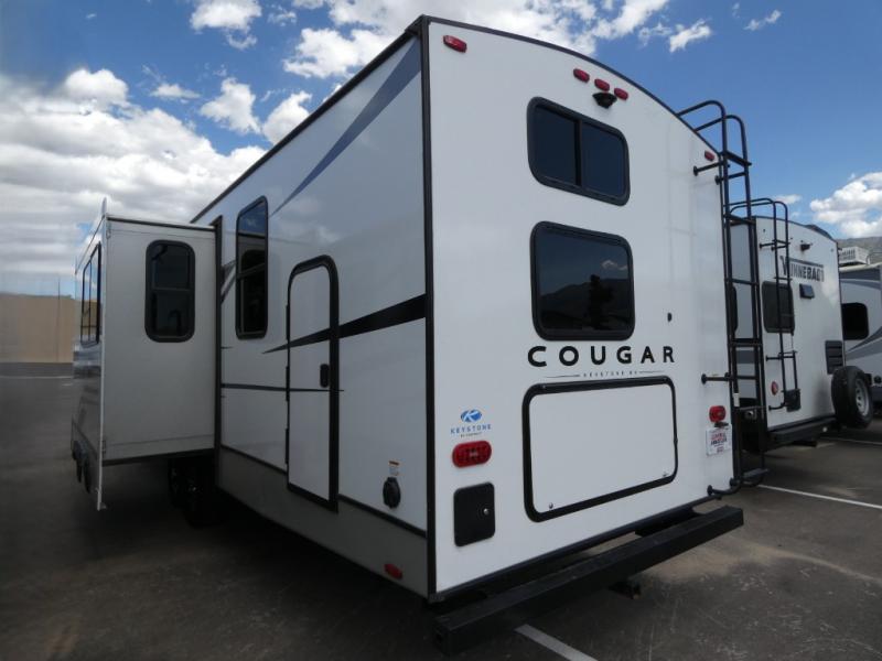 The Keystone Cougar Half-Ton fifth wheel and travel trailers are known as one of America's favorites for a reason! Some of those reasons are the exclusive features that come from Keystone, like the Winegard Air 360+ omni-directional rooftop antenna, the in-floor heating ducts, and the Hyper Deck flooring. The Cougar Half-Ton has a Climate Guard protection package to keep you safe during inclement weather, along with two roof attic vents, PEX plumbing and more. Use the 21" Furrion range with Piezo ignition to create all of those familiar meals from home, and enjoy endless hot showers with the Girard tankless on-demand water heater!