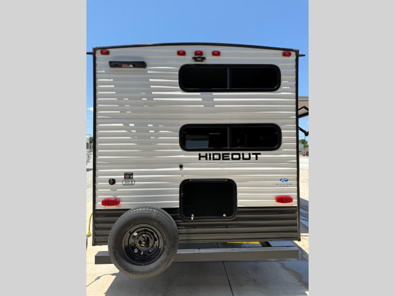 The Keystone Hideout travel trailers will be just what the doctor ordered for a stress-free holiday at your favorite campsite! There are a few exclusive features that you'll only find on a Keystone product, like the in-floor heating ducts, and the Tru-fit™ slide construction. Each model has a power awning for some shade in the afternoon, and the tinted safety glass windows will prevent the harmful UV rays from getting inside. You'll also have blackout night shades that you can close when you want privacy and one-piece pressed countertops that are not only sleek looking, but easy to keep clean.