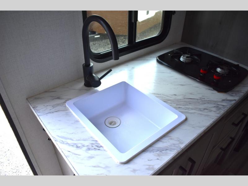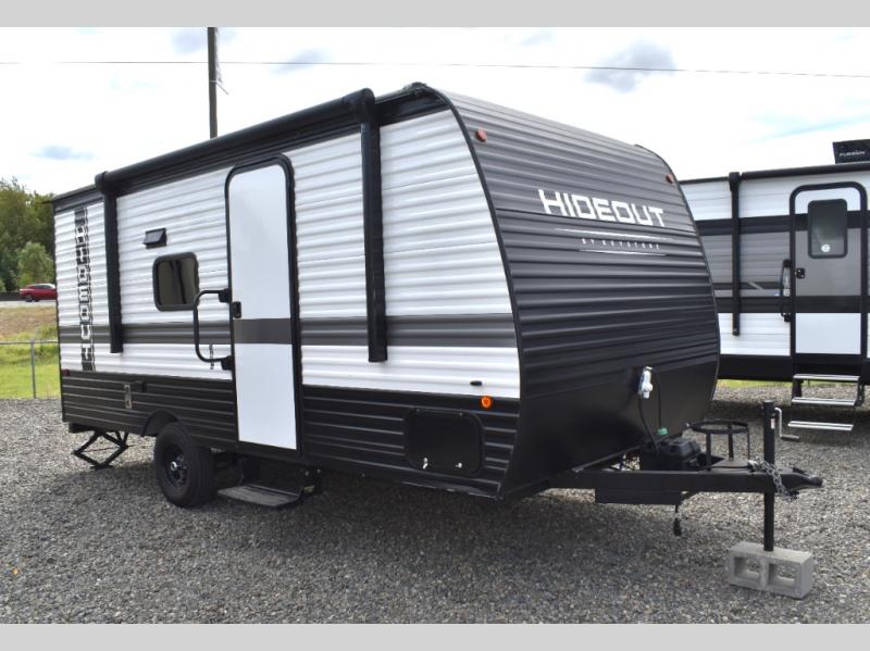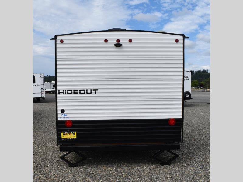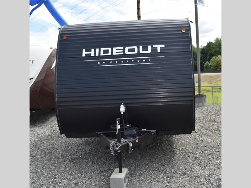 Open your horizons with the Hideout Sport Single Axle travel trailers by Keystone. They are compact, convenient, and lightweight; everything you're looking for in an RV! Each model features an aluminum exterior, tinted safety glass windows, and an I-beam frame with stamped steel cross-members and outriggers for added support. The interior includes blackout night shades for added privacy and real wood doors and drawers that will give a more at-home touch. The Girard tankless water heater is a feature you won't want to camp without, and the LED lighting will keep your space bright and open!