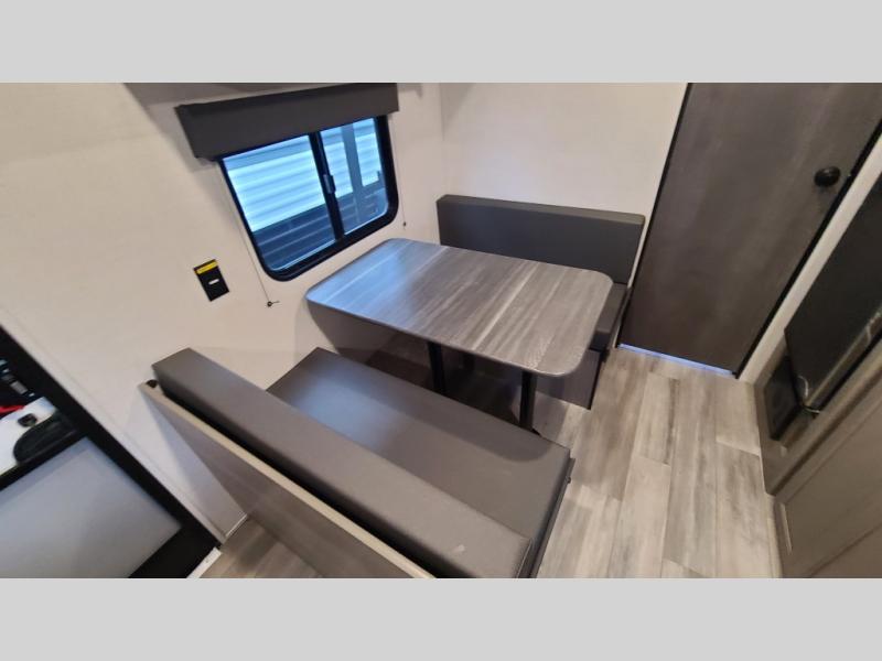 It's time to enjoy the great outdoors with family and friends at the campgrounds you like to meet everyone at! This trailer will allow three to four to camp comfortability with amenities such as a two burner cooktop, a 3.3 cu. ft. refrigerator, and a spacious rear full bathroom. The booth dinette offers a place to dine, read a book and even house an overnight guest. This model also includes a walk-around queen bed that will make your space feel a little more like home!