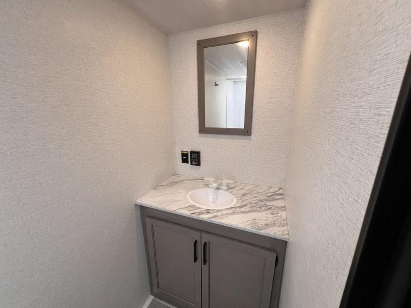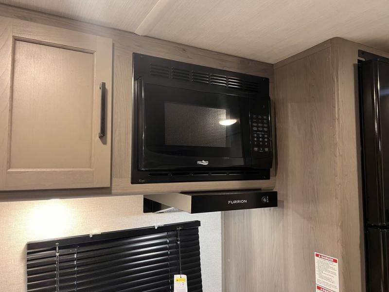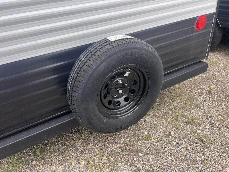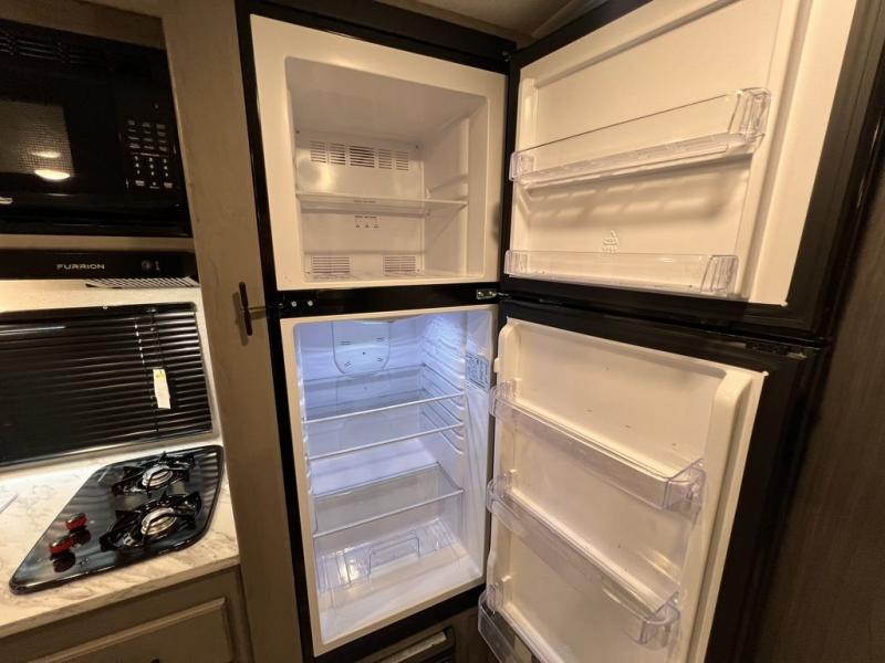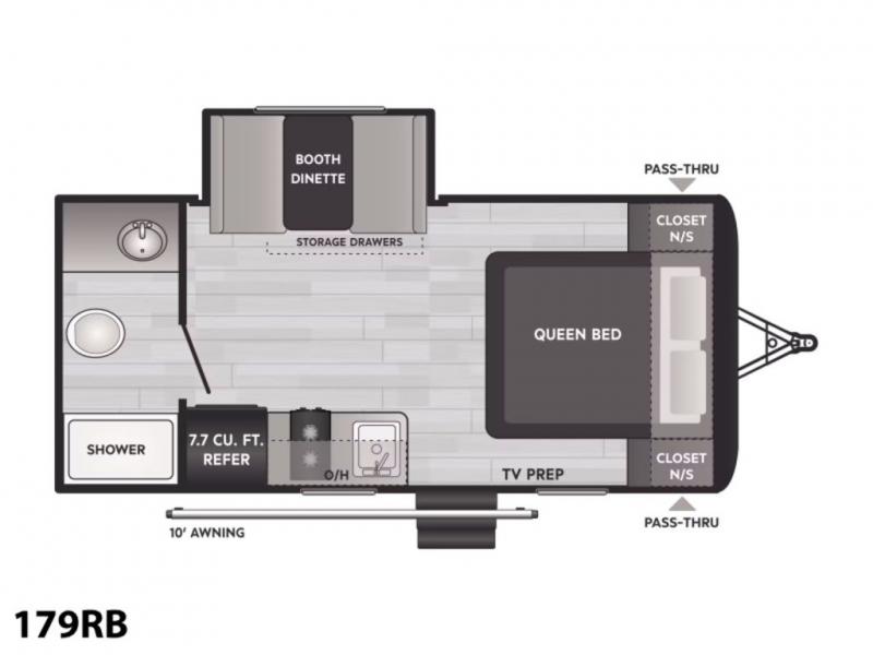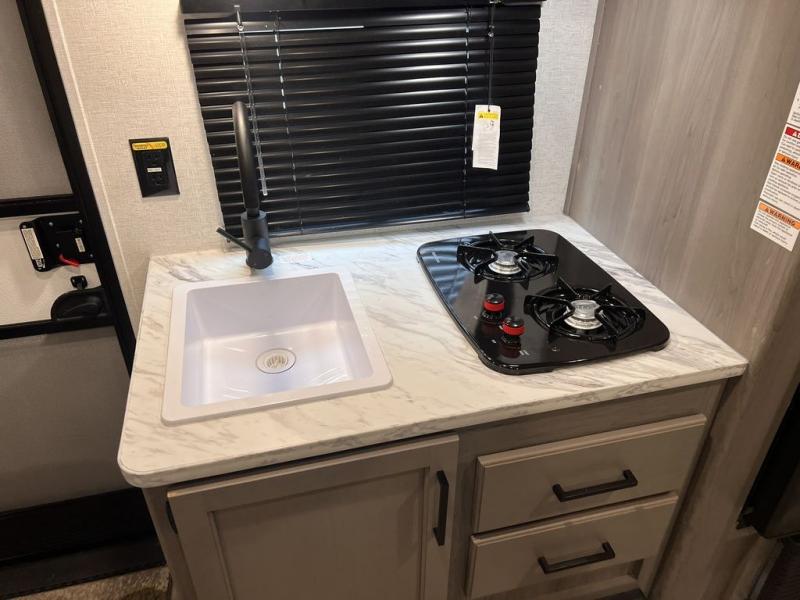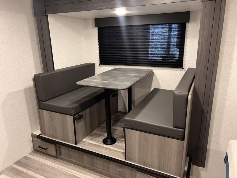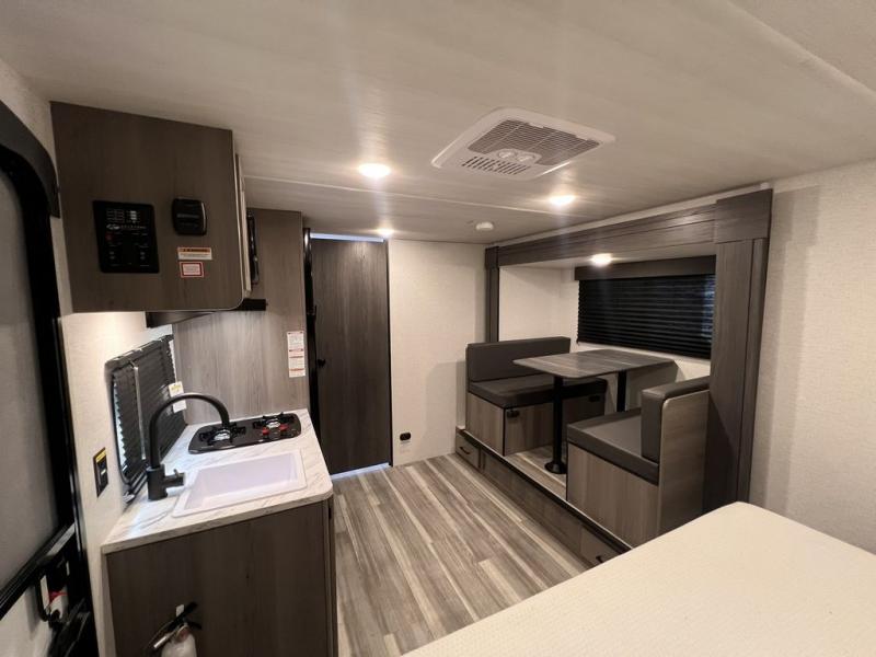 It's time to enjoy the great outdoors with family and friends at the campgrounds you like to meet everyone at! This trailer will allow three to four to camp comfortability with amenities such as a two burner cooktop, a 7.7 cu. ft. refrigerator, and a spacious rear full bathroom. The booth dinette slide offers a place to dine, read a book and even provides sleeping space and storage drawers for board games or throw blankets. The slide gives the interior more floor space as well. This model also includes a walk-around queen bed that will make your space feel a little more like home!