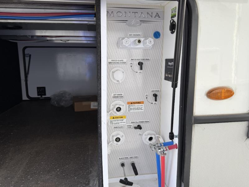Enjoy luxury, innovation, and the outdoors in any one of Montana's finest fifth wheels. Each set the standard with exceptional features, and exciting factory installed options to provide you a great home on the road. Keystone's exclusive 12" I-beam chassis with z-frame technology has been reengineered to be stronger, lighter and built for "the long haul". A few other construction features you will appreciate include a Road Armor suspension, 2" thick, dual-layered lauan high gloss fiberglass sidewalls, a MaxTurn front cap with KeyShield automotive-grade paint, and a fully walkable roof with an Alpha seamless TPO membrane system. Each feature stylish interiors with two new decor choices paired with beautiful hand-glazed hardwood cabinetry, vinyl flooring throughout, central vacuum, plus a Blade Pure airflow system for clean, quite, and cool air!
