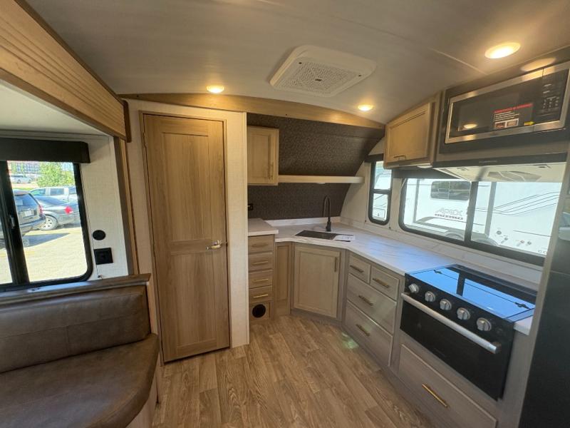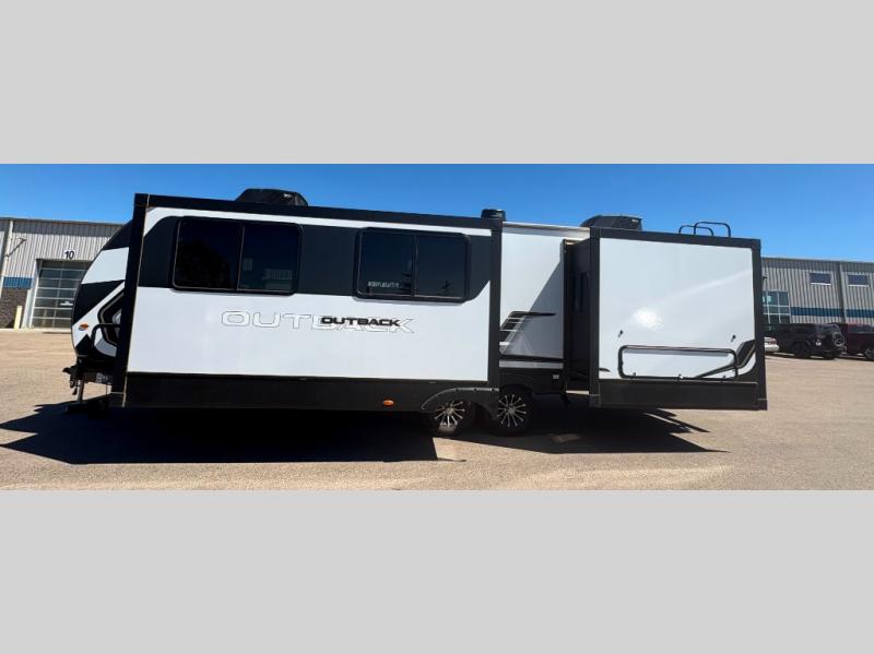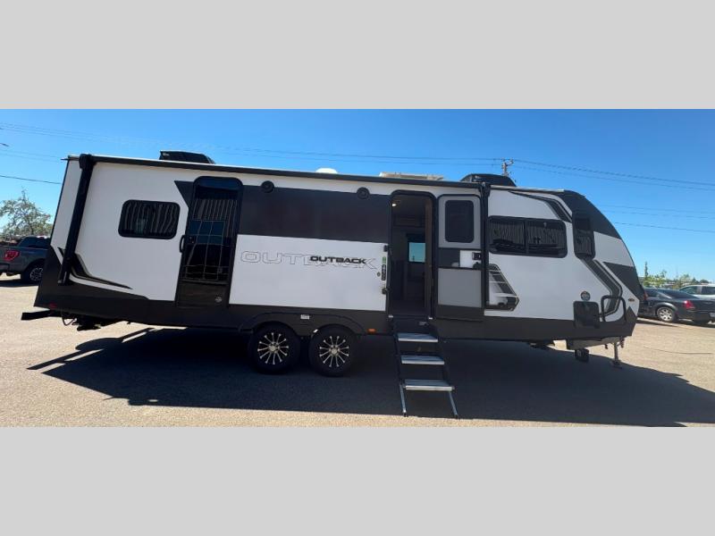 With any Outback Ultra Lite travel trailer or toy hauler by Keystone, you begin with a BAL Norco huck bolted "Z" channel frame, which is one of the most durable lightweight frames in the industry. There is also a pinch rolled laminated gel-coated fiberglass exterior, a leaf spring suspension system, large panoramic black framed tinted safety glass windows, plus a power tongue jack and LCI power stabilizing jacks for easy setup. You will appreciate the SolarFlex Protect 200 that comes standard, or you can choose the optional SolarFlex Discover 400i for even more off-grid capabilities! The interior offers pre-drilled and screwed hand-glazed modern cabinetry, extra tall slide height for maximum space, in-floor heating ducts, a Dream dinette with max-store for more storage space, and an on-demand hot water heater to mention a few highlights. Make your lightweight towing decision today, choose a comfortable and stylish Outback Ultra Lite today!