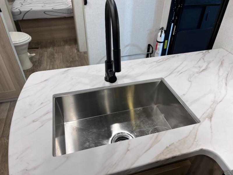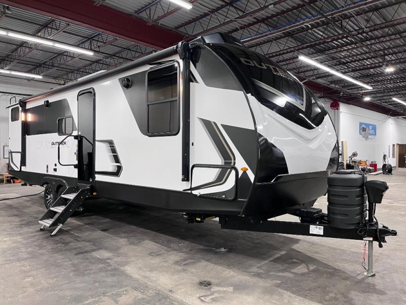 With any Outback Ultra Lite travel trailer or toy hauler by Keystone, you begin with a BAL Norco huck bolted "Z" channel frame, which is one of the most durable lightweight frames in the industry. There is also a pinch rolled laminated gel-coated fiberglass exterior, a leaf spring suspension system, large panoramic black framed tinted safety glass windows, plus a power tongue jack and LCI power stabilizing jacks for easy setup. You will appreciate the SolarFlex Protect 200 that comes standard, or you can choose the optional SolarFlex Discover 400i for even more off-grid capabilities! The interior offers pre-drilled and screwed hand-glazed modern cabinetry, extra tall slide height for maximum space, in-floor heating ducts, a Dream dinette with max-store for more storage space, and an on-demand hot water heater to mention a few highlights. Make your lightweight towing decision today, choose a comfortable and stylish Outback Ultra Lite today!