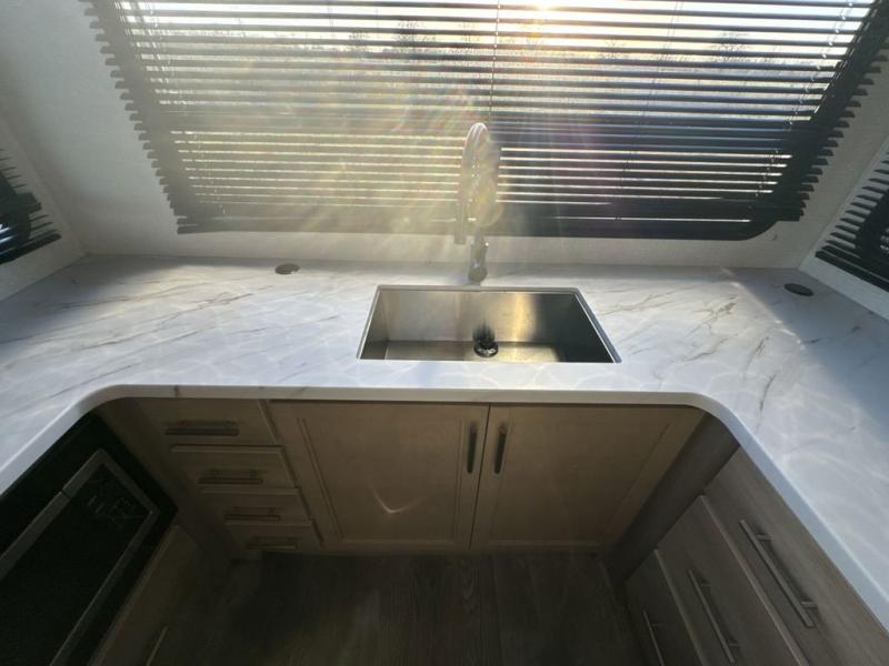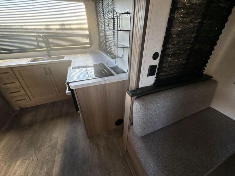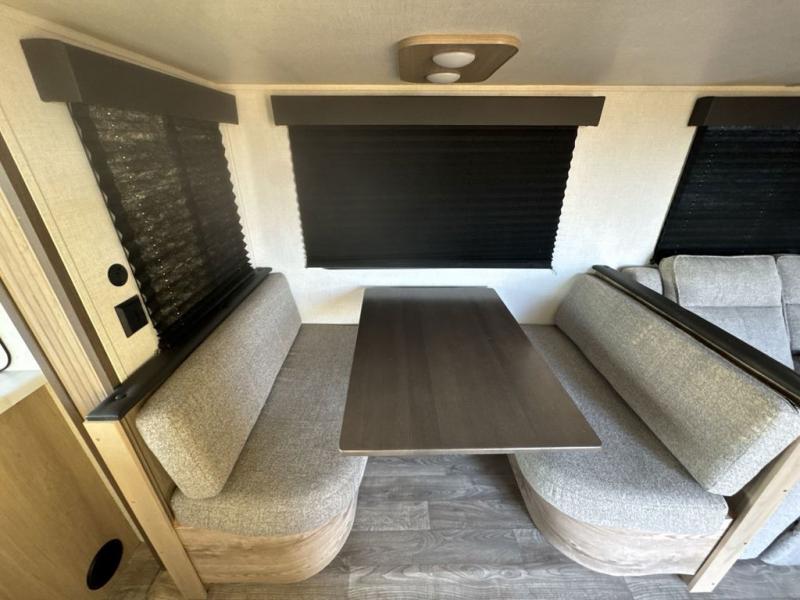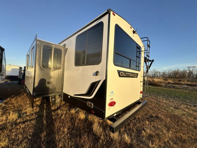 With any Outback Ultra Lite travel trailer or toy hauler by Keystone, you begin with a BAL Norco huck bolted "Z" channel frame, which is one of the most durable lightweight frames in the industry. There is also a pinch rolled laminated gel-coated fiberglass exterior, a leaf spring suspension system, large panoramic black framed tinted safety glass windows, plus a power tongue jack and LCI power stabilizing jacks for easy setup. You will appreciate the SolarFlex Protect 200 that comes standard, or you can choose the optional SolarFlex Discover 400i for even more off-grid capabilities! The interior offers pre-drilled and screwed hand-glazed modern cabinetry, extra tall slide height for maximum space, in-floor heating ducts, a Dream dinette with max-store for more storage space, and an on-demand hot water heater to mention a few highlights. Make your lightweight towing decision today, choose a comfortable and stylish Outback Ultra Lite today!