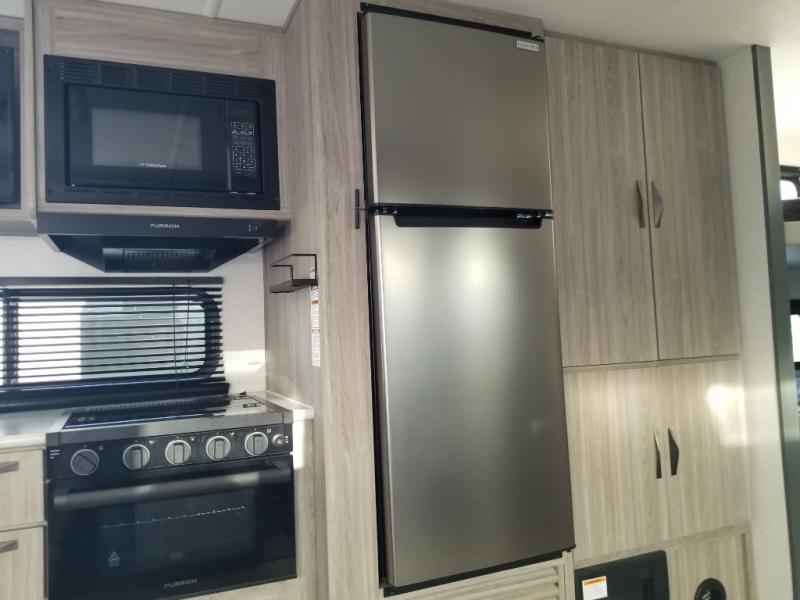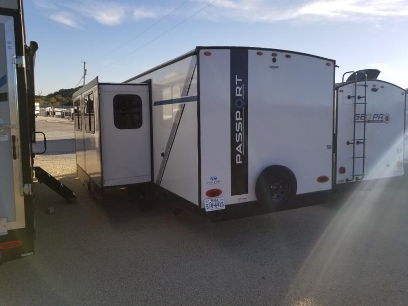 Let your days turn into weeks and your weeks turn into months with this Passport SL travel trailer! You can keep all of your gear stored effortlessly in the rear cargo door and the front pass-through storage compartment, and the interior also offers some storage space with the bedside wardrobes and large kitchen pantry or utilize this space as a wardrobe. You also have plenty of space to keep your perishable foods from spoiling with the interior 10 cu. ft. 12V refrigerator and in the exterior refrigerator in the outside kitchen. The tri-fold sofa sleeper and U-shaped dinette will provide you with some extra sleeping space so that you can invite friends or family to join you, and the full bathroom is going to keep everyone clean.