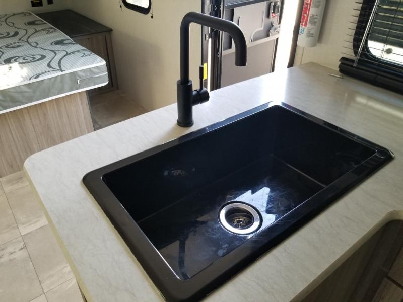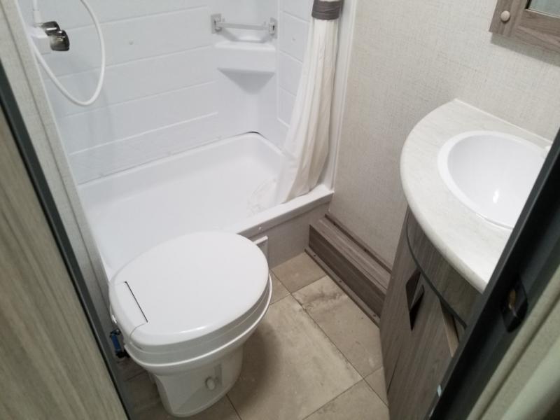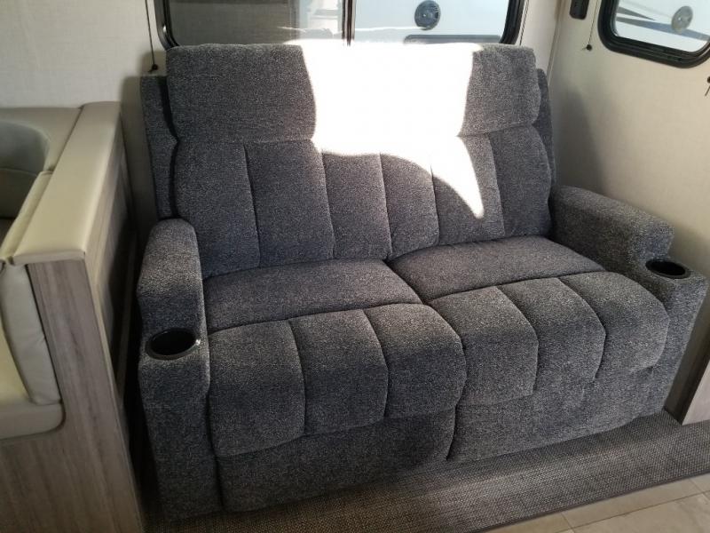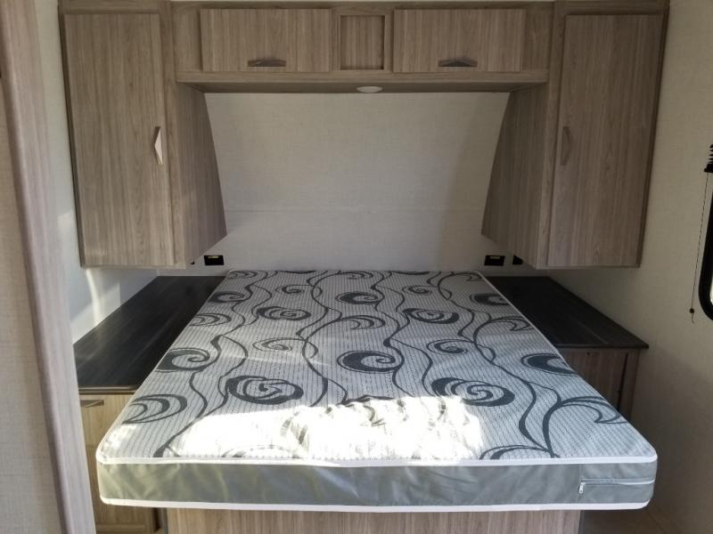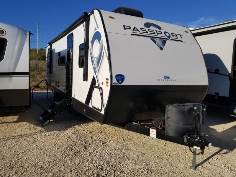 With any Keystone Passport SL you will enjoy lightweight towing and lots of interior comforts! The power tongue jack lets you hitch up at the drop of a hat, and the Dexter torsion axle rubber ride suspension will make towing easier than ever. You will appreciate having power stabilizer jacks for quick setup and an exterior convenience center to monitor tank levels. These trailers are constructed with a seamless, laminated and gel-coated filon exterior, 80% tinted safety glass windows, and a one-piece polypropylene underbelly. The interior will have you feeling right at home with residential durable Beauflor vinyl flooring, deluxe night shades, LED lighting throughout, and seamless kitchen countertops to name a few comforts.