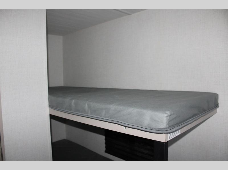 Get ready for outdoor fun with your favorite people when you have this trailer in tow! Once at your campsite, you can easily setup the 10' power awning, grab your camping chairs from the pass-through storage, and relax or start playing. The cook will love the galley kitchen with the two burner cooktop and microwave oven, plus a refrigerator for cold items. If you like, you can eat inside at the booth dinette which doubles as sleeping space, and of course the kids will love the bunk beds next to the full bathroom. And you will sleep soundly on the front queen bed.