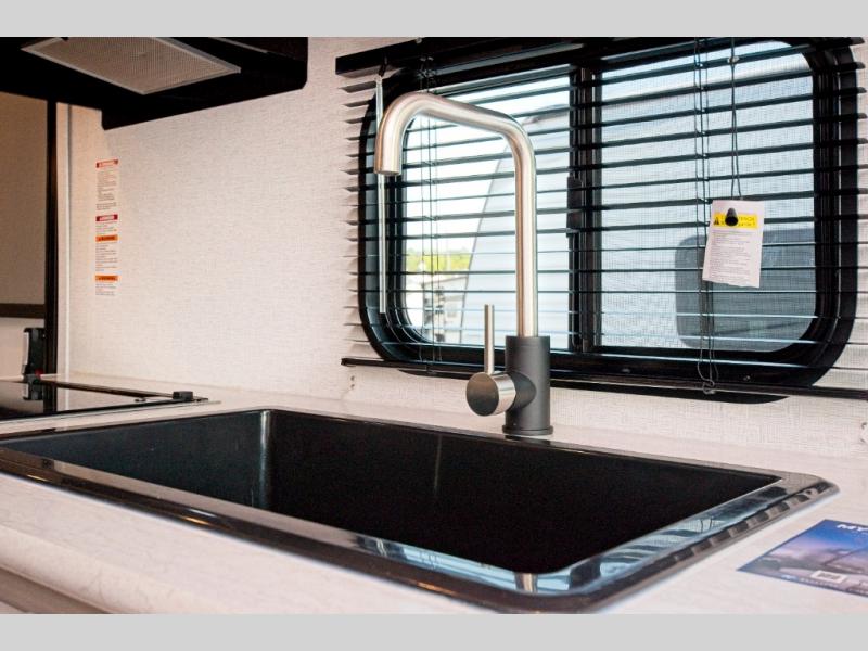 Inside, you'll find LED lighting, blackout night shades, bedside outlets, and flush-mount appliances for a modern, home-like feel. Keystone’s exclusive color-coded wiring and in-floor heating ducts add convenience and comfort, while the optional SolarFlex 200 package lets you explore off-grid with confidence.