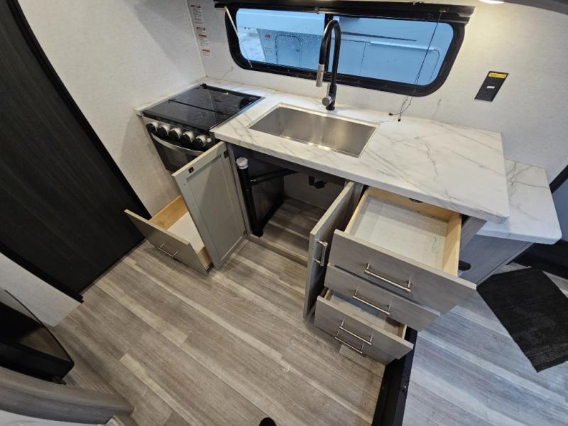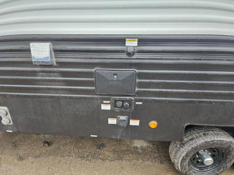 With any Springdale travel trailer by Keystone you will enjoy convenient amenities and comfortable camping features at every turn. The aluminum exterior will be easy to clean, and the power awning provides protection against the hot summer sun. There is also an exterior shower, a friction hinge entry door, and an XL entry assist handle to safely enter and exit the unit. You will find many comforts inside, including a stainless steel sink, ample storage space for your belongings, and cozy sleeping spaces. Start a new adventure today in a Springdale travel trailer!