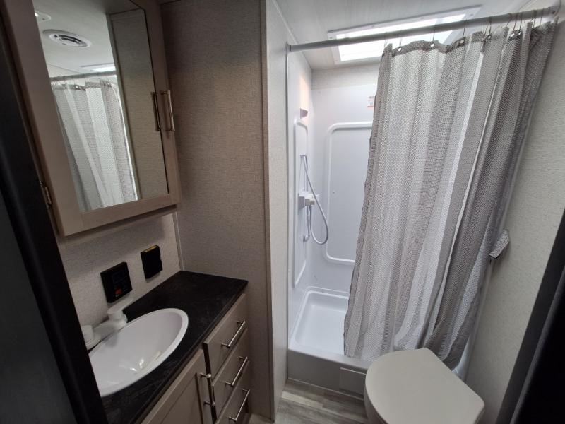 With any Springdale travel trailer by Keystone you will enjoy convenient amenities and comfortable camping features at every turn. The aluminum exterior will be easy to clean, and the power awning provides protection against the hot summer sun. There is also an exterior shower, a friction hinge entry door, and an XL entry assist handle to safely enter and exit the unit. You will find many comforts inside, including a stainless steel sink, ample storage space for your belongings, and cozy sleeping spaces. Start a new adventure today in a Springdale travel trailer!