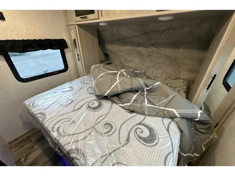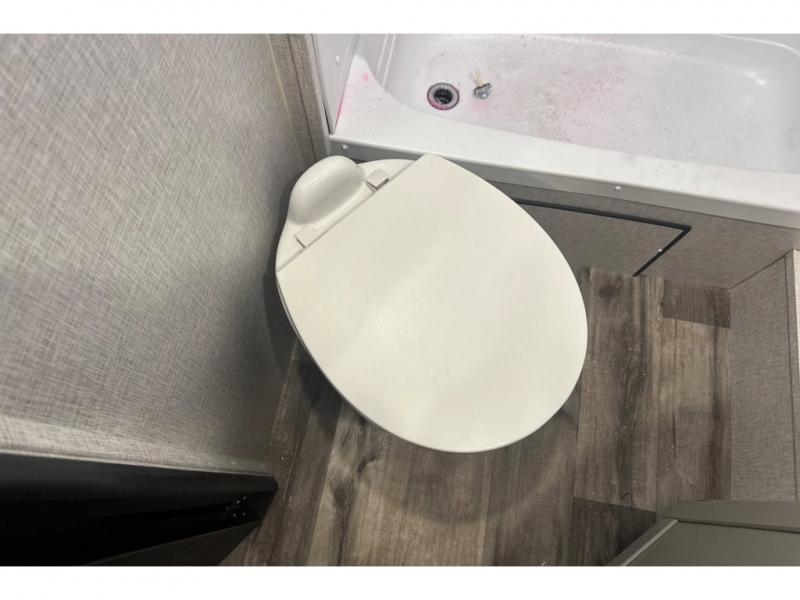 With any Sunset Trail travel trailer by CrossRoads RV, the interior offers a stainless steel farmhouse sink with a cover, solid surface kitchen countertops, and a docking station with 12 Volt, USB Port, and 110 Outlets. Also included is a 13,500 BTU air conditioner plus upgraded insulation with roof and floor reflective foil for added comfort, plus sturdy construction elements like a plywood bed board with strut assist, residential wood window trim, and hardwood cabinet doors. Make your lightweight and comfortable RV decision today!