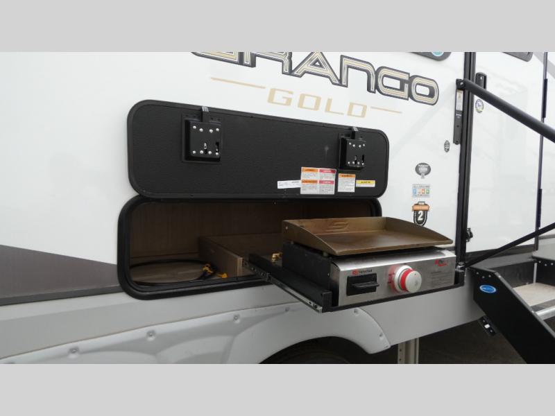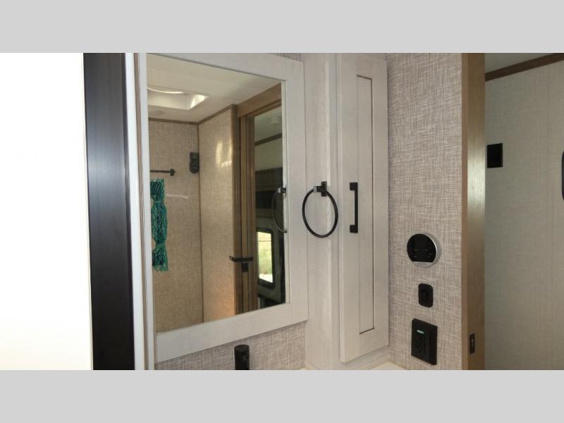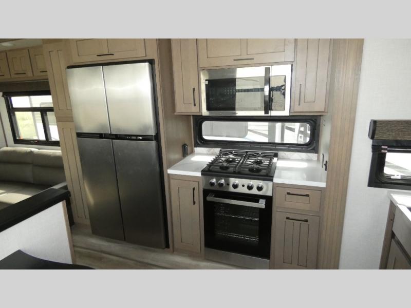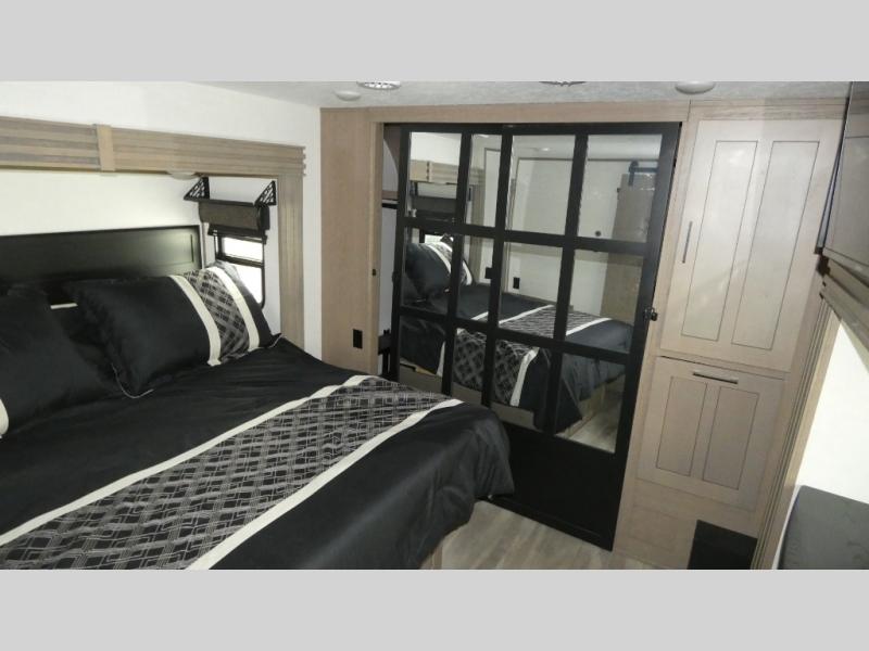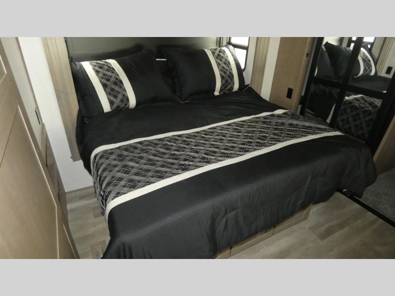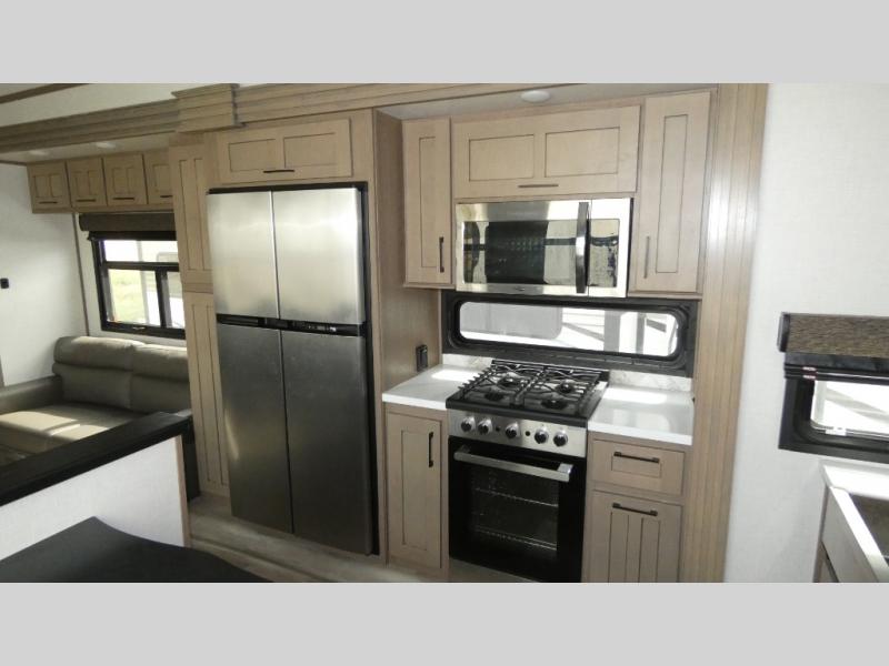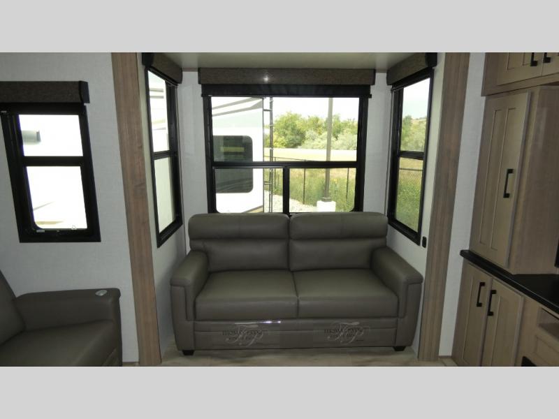 With any KZ Durango Gold full-time luxury fifth wheel, you will enjoy the new Blancher Cherry cabinetry, stainless steel appliances such as a 30" convection microwave and 24" oven with a four burner range, plus a stainless dishwasher. Other top features include an electric tilt bed with Serta Comfort foam king mattress, two 15K A/C units, plus theater seating with powered recline, heat and massage features. You will also appreciate a handy central vacuum system with attachments that stores out of sight. Each Durango Gold is constructed with six-sided aluminum framing, and has a heated, insulated and an enclosed underbelly. It is also constructed with Tufflex roofing material which is flexible, puncture resistant, and reflective. The now standard "Off The Grid" solar package includes two 200W solar panels, a 30A MPPT solar charge controller, and a 2,000W True Sine Wave inverter for off-grid capabilities. If you're wanting to go completely off-grid, you might want to choose the optional Boondocker Solar System with even more features that won't require you to be close to electric hookups!