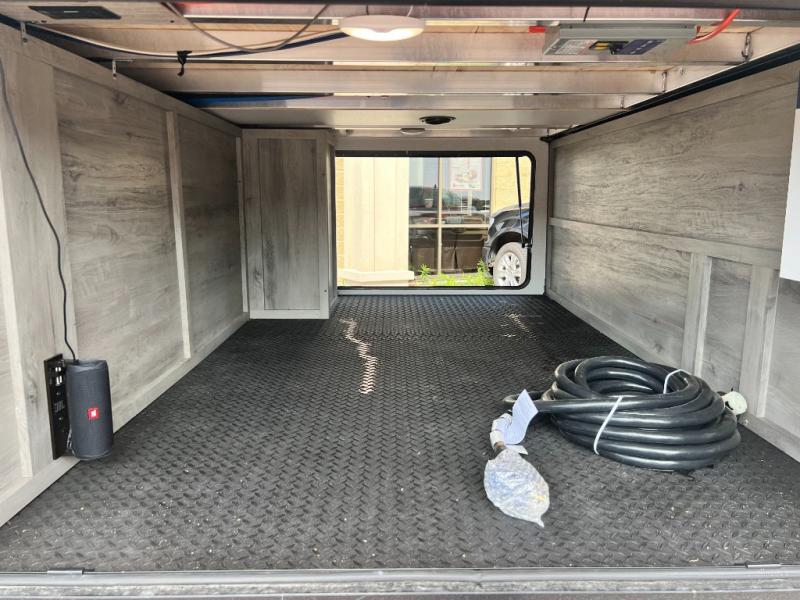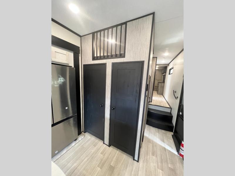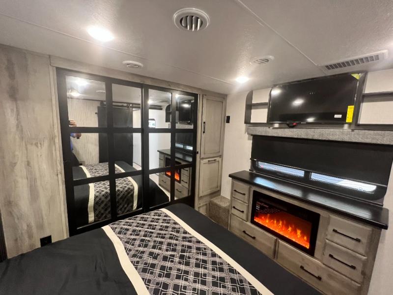 When you enjoy traveling with family and friends, this Durango Gold can provide everything you want, plus more! Beginning with the rear patio door that leads to the unique patio deck that provides a place to relax and unwind as well as stow a few items above ground. When you are ready to experience luxury and comfort head back inside to the fireplace below the 50" Smart LED TV and sit in the chairs or on the hide-a-bed sofa, or even at the dining table. There is a full-timer's desk option to choose as well. The cook will have full amenities, upgraded appliances, a kitchen island with a farmhouse stainless steel sink, solid surface countertops, and a pantry to store lots of goodies. The middle extra room can be utilizes as a bunkhouse, another living area, or even an office because of the desk top, plus there is a queen size loft above. And you will be able to sleep like royalty in the front bedroom with a fireplace. There is plenty of storage for your clothing, as well as a 32" Smart LED TV, plus washer and dryer prep if you want the option to make laundry day easier!