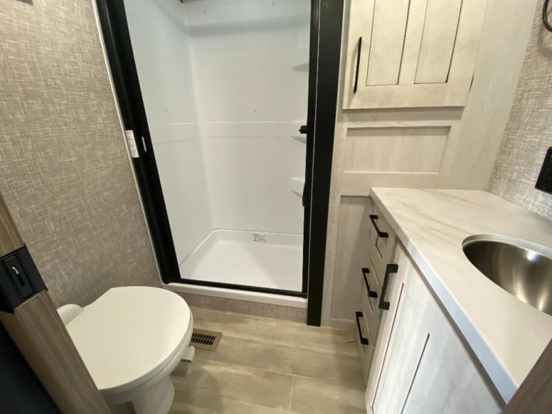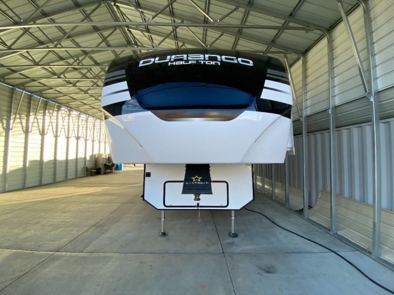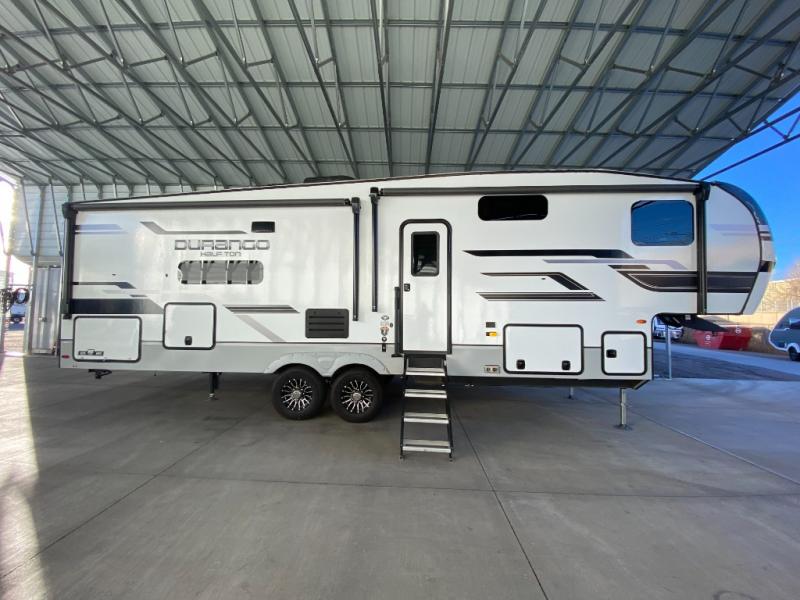 Each Durango Half-Ton fifth wheel by KZ provides lightweight towing with interior luxuries galore! Controlling the functions of your unit will be a breeze with the KZ Engage powered by OneControl that includes a 7" touchscreen to control awnings, lights, tanks, and more. There are so many exterior conveniences to make each trip enjoyable, like the Durango Towing Package, metal latches on the baggage doors, heated water convenience center, and the flip-up main entry steps! Durable construction includes Tufflex PVC roofing, laminated Azdel composite panels, and a reinforced heavy-duty fiberglass front cap. The interior will feel more like a residential home with new Blancher Cherry cabinets, seamless countertops, a spacious shower, a redesigned front bedroom, and smart storage spaces! You can also customize your fifth wheel to fit your needs with available options, such as, generator prep, backup camera prep, a full-timers desk in place of the dinette table, and so much more!