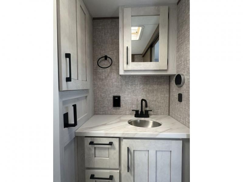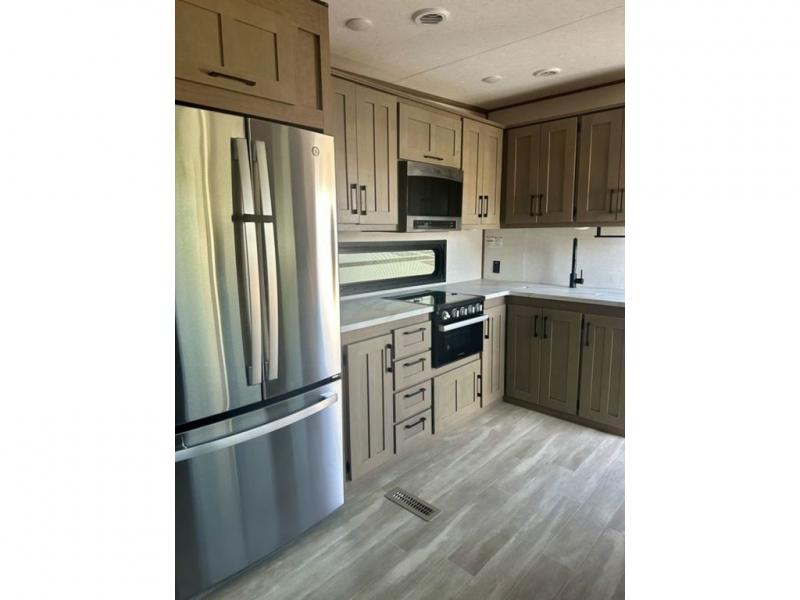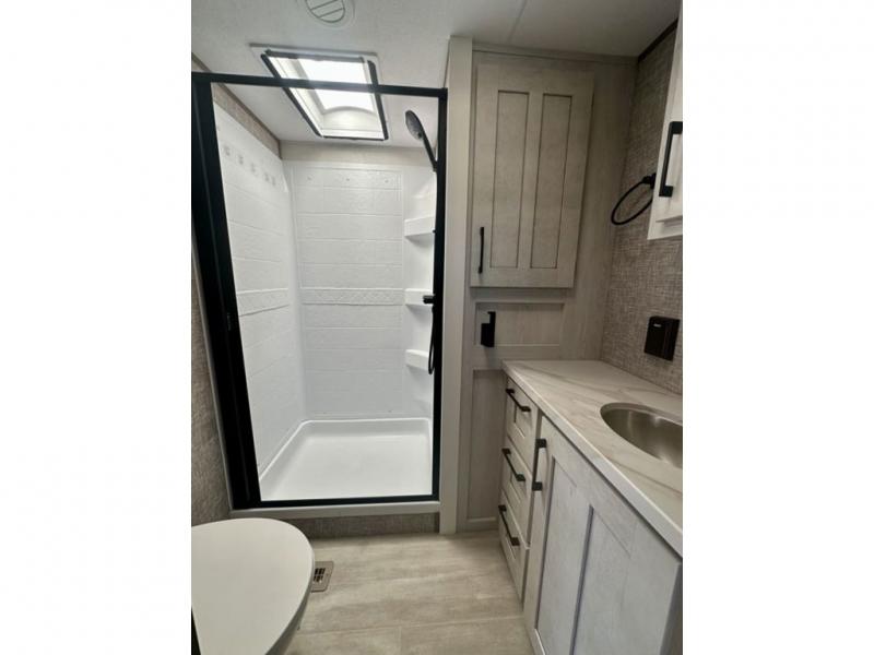 With any Durango Half-Ton fifth wheel by KZ you will enjoy lightweight towing at an affordable price! Controlling the functions of your unit will be a breeze with the KZ Engage powered by OneControl that includes a 5" touchscreen to control awnings, lights, tanks, and more. There are so many exterior conveniences to make each trip enjoyable, like the 2" towing receiver hitch with a four-pin wire harness connection, the metal latches on the baggage doors, the fully-finished, heated and sealed basement storage compartment, and the list goes on! Step inside to find modern farmhouse cabinetry, solid hardwood slide out fascia, seamless countertops with a deep undermount stainless steel sink, and many more at-home comforts. You can further customize your fifth wheel by adding one or more of the many options that are available, like the full-timers hardwood desk in place of the dinette table, the 32" exterior TV with a bracket, and the four-point auto electric leveling to name a few!