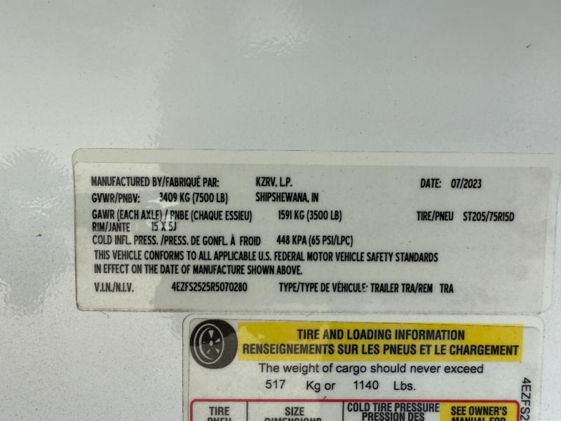 Used 2024 KZ Sportsmen 231RK Fifth Wheel