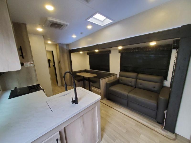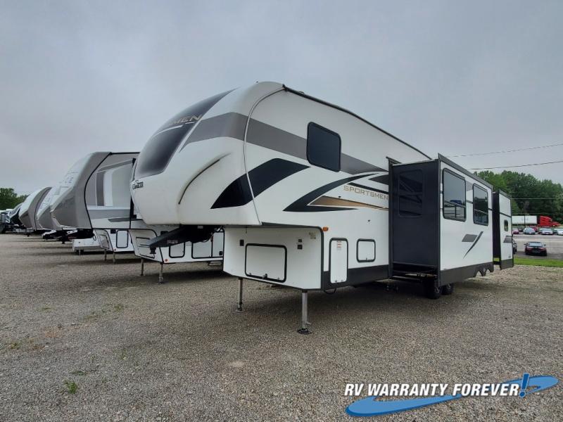Enjoy a home away from home with any one of these KZ Sportsmen destination trailers or fifth wheels! The one-piece, seamless fully walk-on Tufflex roofing material and the 5/8" tongue and groove plywood floors with residential grade linoleum enclose the units. A super sized panoramic slide room window lets you look out at your beautiful surroundings. The mandatory KZ Advantage package adds extra convenience with features like the leash latch with bonus beverage opener, 36" storage bins with the booth dinette, and an A/C RV airflow system to keep you cool. The Climate package has a heated, insulated, and enclosed underbelly so you can camp later into the year. Come find the right one for you!