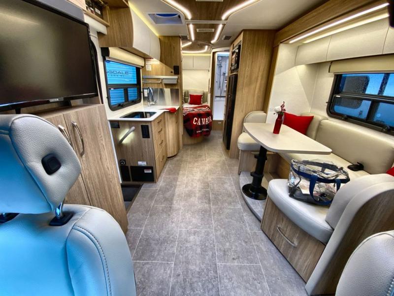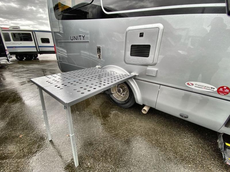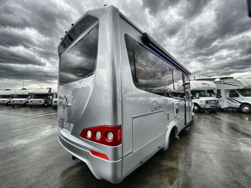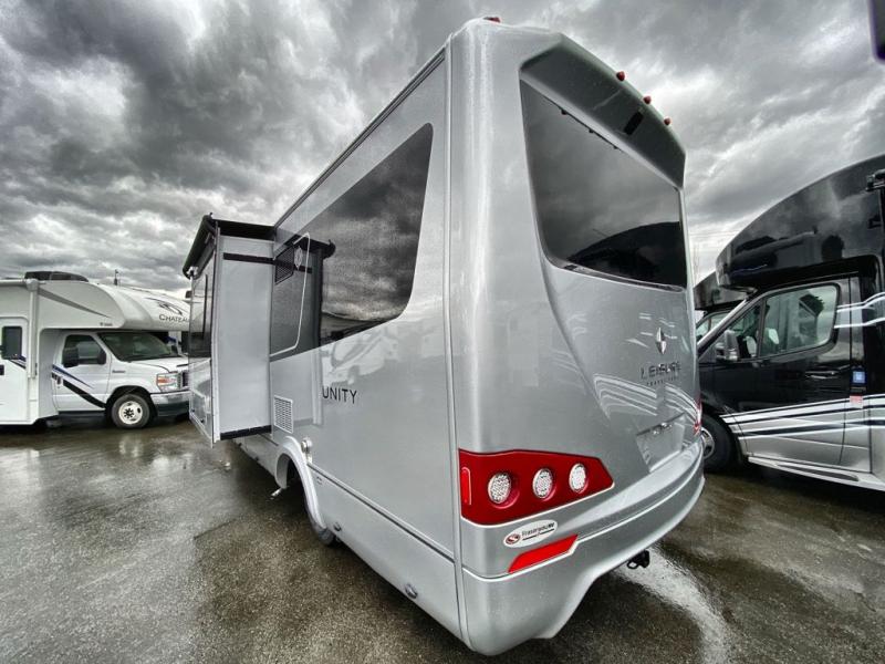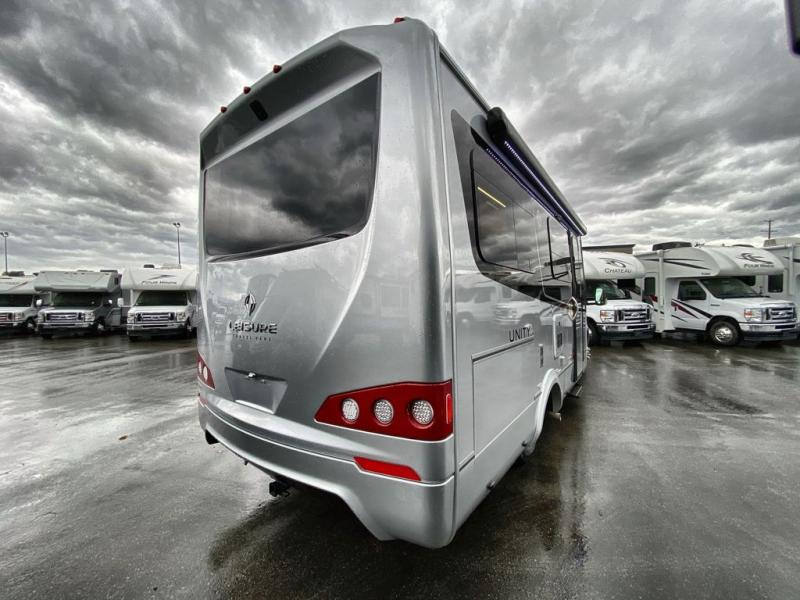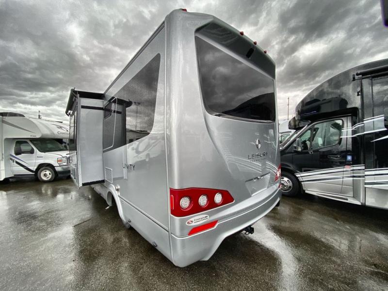 Each Unity Class B+ diesel motorhome by Leisure Travel sits on a durable Mercedes-Benz Sprinter 3500 dual rear wheel chassis with a 2.0-L Turbocharged I-4 diesel engine to power your adventures. The powder coated steel undercarriage support structure and vacuum-bonded construction provide a coach that will last for years, and there are eight sleek exterior paint options to make the coach your own. You'll love driving the Unity with its electronic stability control, adaptive cruise control, 9-speed automatic transmission with quieter noise levels and more comfort. There is even a digital mirror with sharp high-resolution that can be switched between convectional display and digital display for convenience. The luxurious interior includes Ultraleather furniture, a contoured solid surface Corian countertop in the kitchen, new decor options, plus many more comforts. And all of your power need will be met with dual 100 ah, 12V Lithium coach batteries with an internal heating system, plus a 2000W pure sine inverter and a 30 Amp power cord.