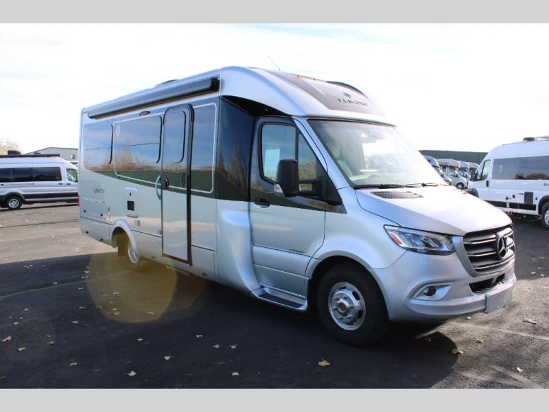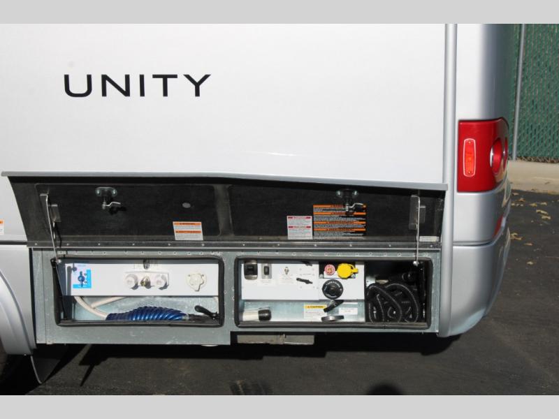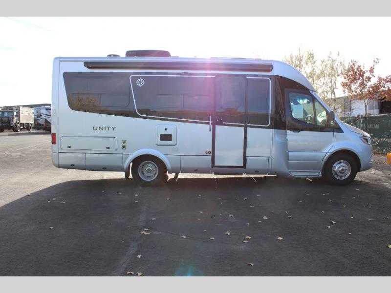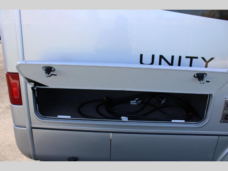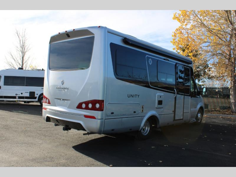 Each Unity Class B+ diesel motorhome by Leisure Travel sits on a durable Mercedes-Benz Sprinter 3500 dual rear wheel chassis with a 2.0-L Turbocharged I-4 diesel engine to power your adventures. The powder coated steel undercarriage support structure and vacuum-bonded construction provide a coach that will last for years, and there are eight sleek exterior paint options to make the coach your own. You'll love driving the Unity with its electronic stability control, adaptive cruise control, 9-speed automatic transmission with quieter noise levels and more comfort. There is even a digital mirror with sharp high-resolution that can be switched between convectional display and digital display for convenience. The luxurious interior includes Ultraleather furniture, a contoured solid surface Corian countertop in the kitchen, new decor options, plus many more comforts. And all of your power need will be met with dual 100 ah, 12V Lithium coach batteries with an internal heating system, plus a 2000W pure sine inverter and a 30 Amp power cord.