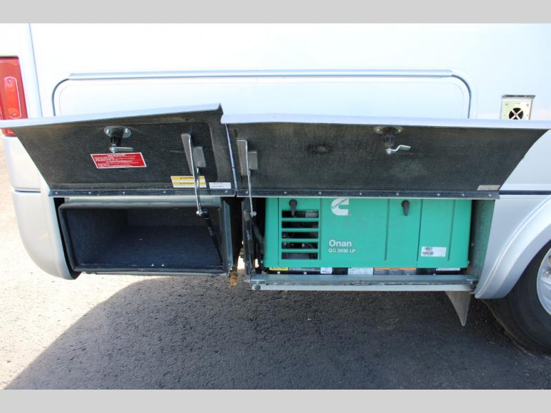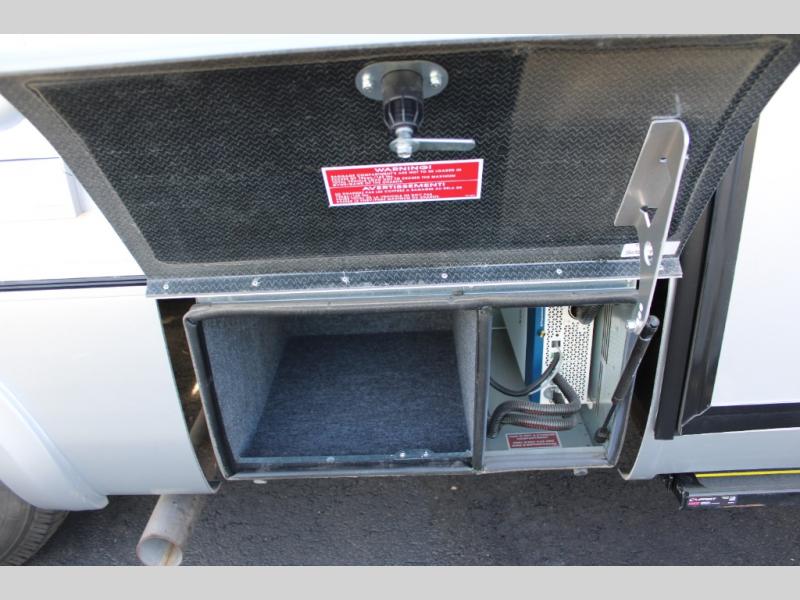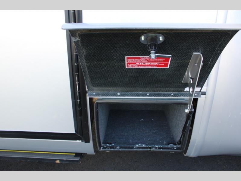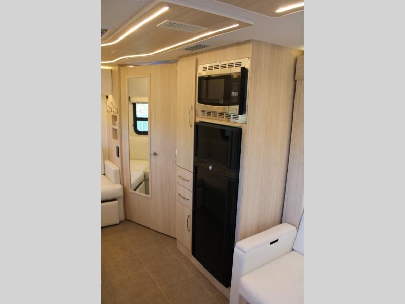 You will be impressed with this Unity Class B+ diesel motorhome because of the unique rear living space that has a sectional sofa, adjustable ottoman, and flexible bathroom door that will fold inward or outward depending on where you need the extra space. With a wardrobe, a bathroom medicine cabinet, and a large pull-out pantry, there is no doubt that you will be able to find storage space for all of your belongings, and having two living areas, a Murphy bed for nighttime, and a flush-mount LP cooktop to make meals will let you travel for however long you like.