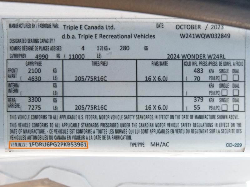 | VIN | 1FDRU6PG2PKB53961 |