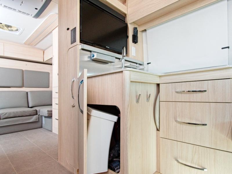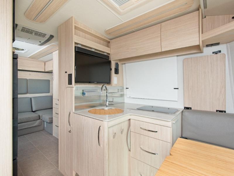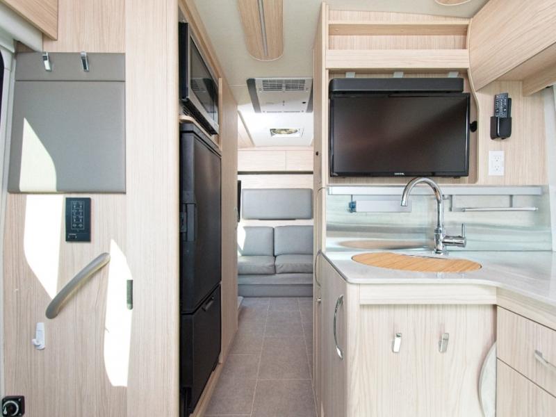 Inside, enjoy soft-close cabinetry, full-extension drawers, LED accent lighting, and tile-look vinyl flooring for a modern, easy-care finish.