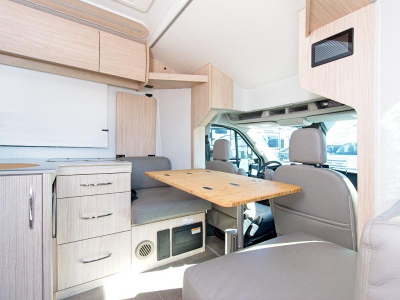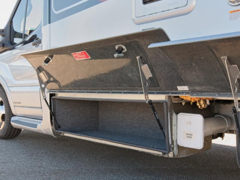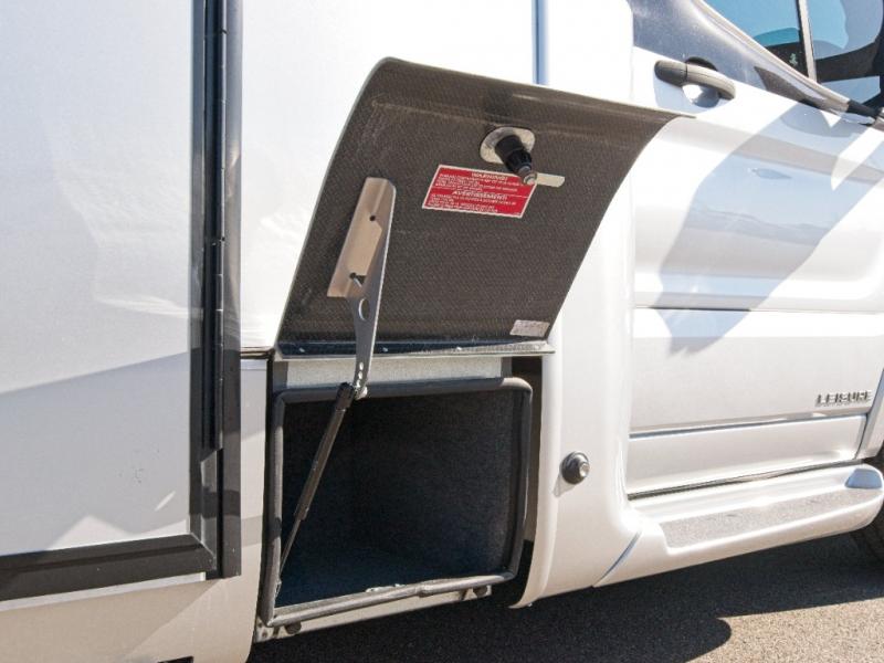 Constructed with vacuum-bonded aluminum framed insulated sidewalls, a domed fiberglass roof, and a composite floor, this motorhome is as durable as it is elegant. Built on a Ford Transit T-350 chassis, it offers: