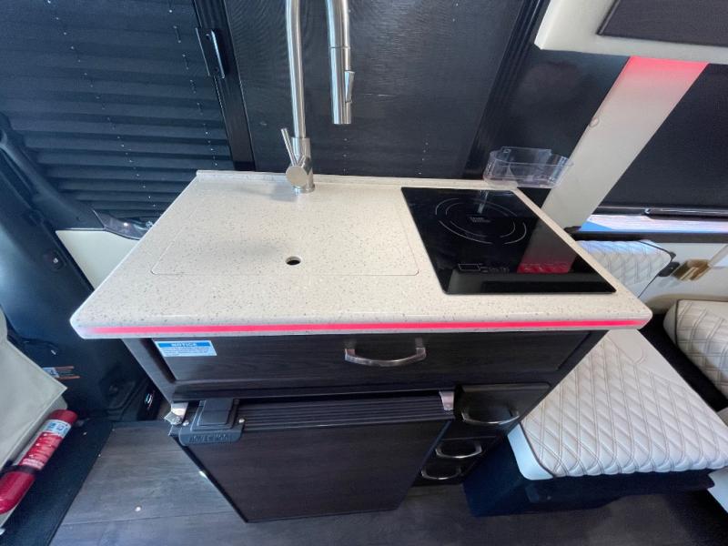 Head across the country or enjoy day trips in this coach for two! There is a rear power folding sofa where you can relax each day after traveling, and this space will become your bed at night. There is also a jump seat with a lagun table across from a wardrobe where you can keep your belongings organized. The recessed cooktop and microwave will let you make meals instead of having to opt for take-out, and the wet bath with a porcelain toilet and retractable clothes line will let you freshen up each day.