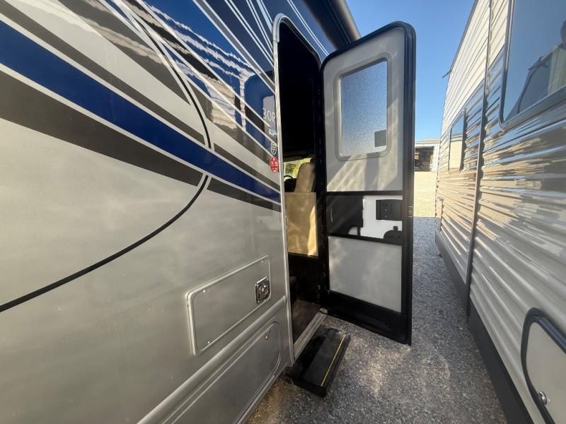 Don't pass by the well-constructed NeXus Phantom Class C gas motorhome! You will be very impressed with its solid and reliable design that will allow you to travel for years and years without any concern. The high-strength low-alloy lightweight steel cage forms the base of every Phantom, and the seamless fiberglass roof adds great protection over your heads. You'll find an outside shower to use whenever you need to get some mud off your shoes, and the Winegard 360 antenna gives you a great solution for your internet needs. You'll even be able to spend some time outside in the afternoon sun because you can use the electric awning with LED lights for a covering when you start to burn.