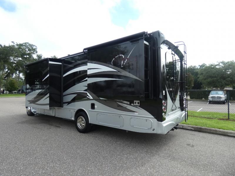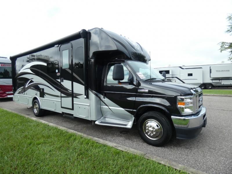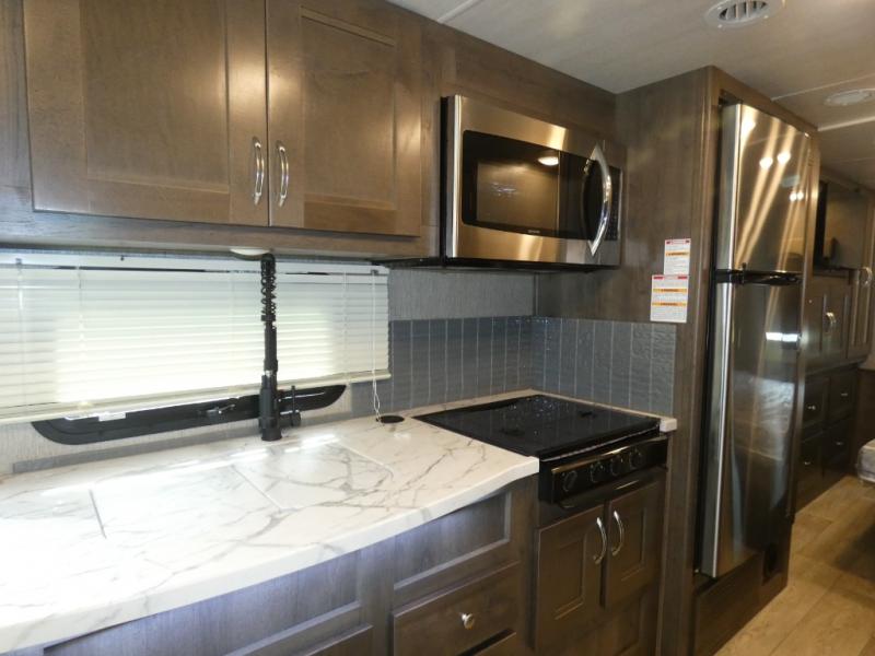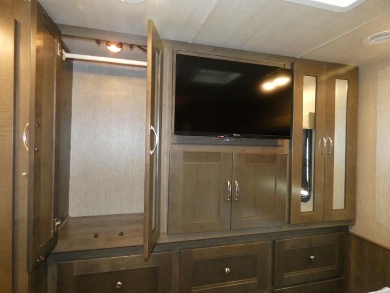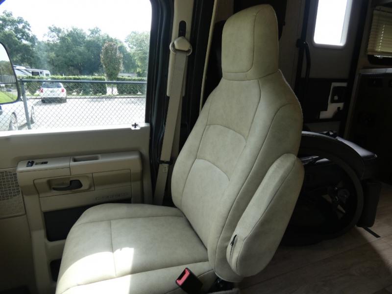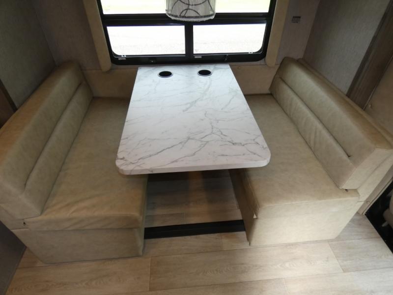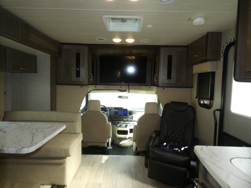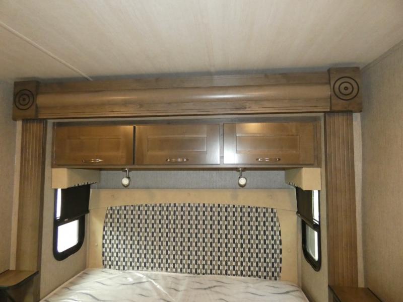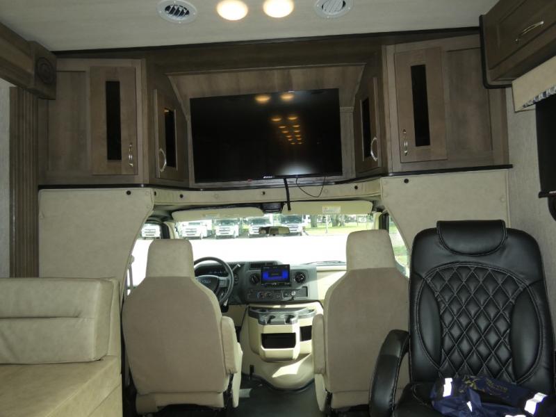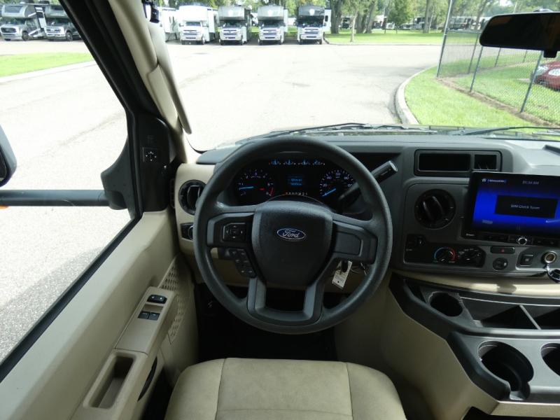 Whether you travel with your family on long vacations or your spouse for months at a time, this spacious Class B+ offers two slide outs giving you lots of floor space to enjoy at any destination. The cook will love having a 10 cu. ft. refrigerator to carry lots of goodies especially when the family joins you, and there is storage found throughout in overhead cabinets for your dishes and such. The full bathroom is in between the main area and the rear bedroom and offers a shower with a flexible hose shower head, a skylight for more headroom in the shower, and a vinyl door, plus everything else needed to stay refreshed. The rear window in your bedroom will provide great views while you lay in your queen bed slide out! You will have a wardrobe to keep your clothing ready for shopping in town or venturing outdoors. You will also find a 4.0 KW generator, an LP quick disconnect, and a 7,500 lb. hitch if you decide to tow something.