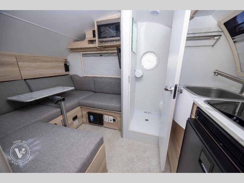 This compact travel trailer is approximately 15 feet 6 inches in length and boasts a u-shaped dinette that converts into a bed, a galley kitchen, and a wet bath. This adventure-ready RV is ready for any adventure while keeping the comforts of home at your fingertips. This highly unique floorplan boasts all of the comforts of a bigger travel trailer into its compact size.
