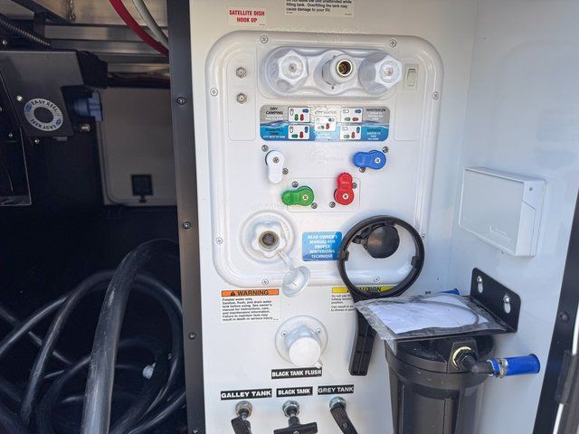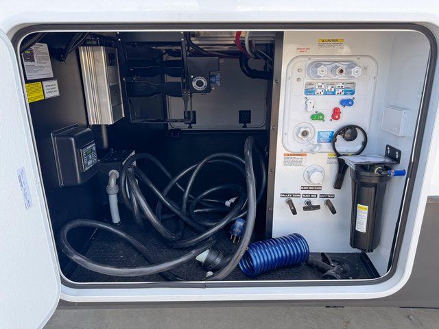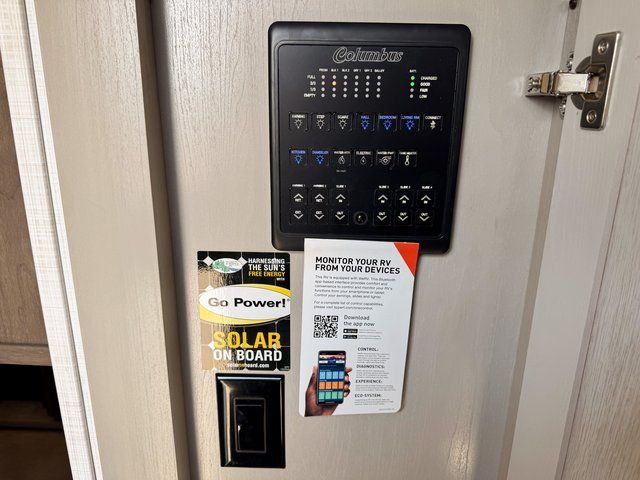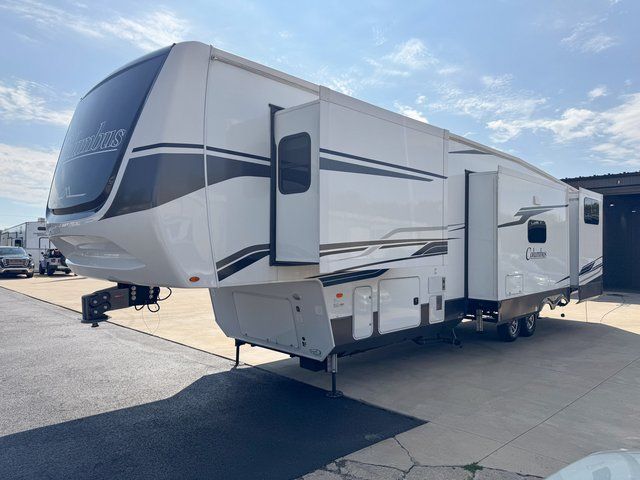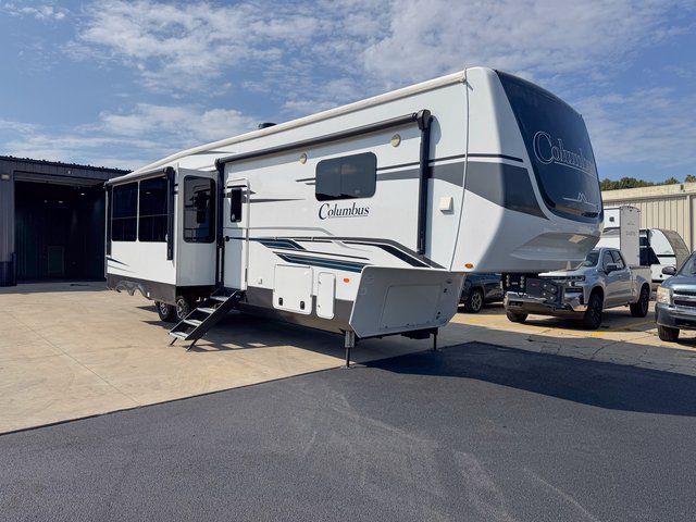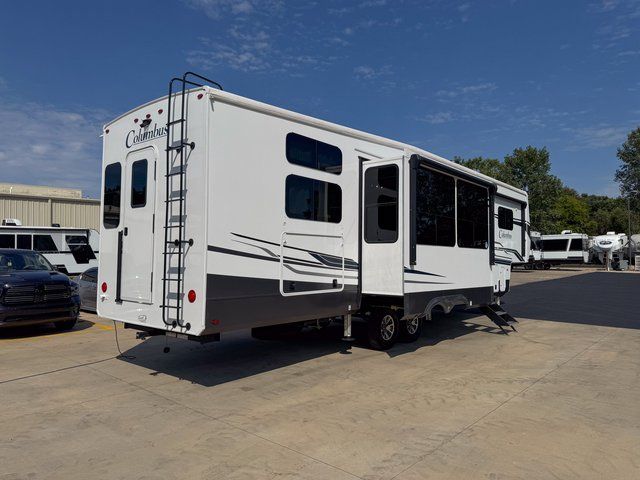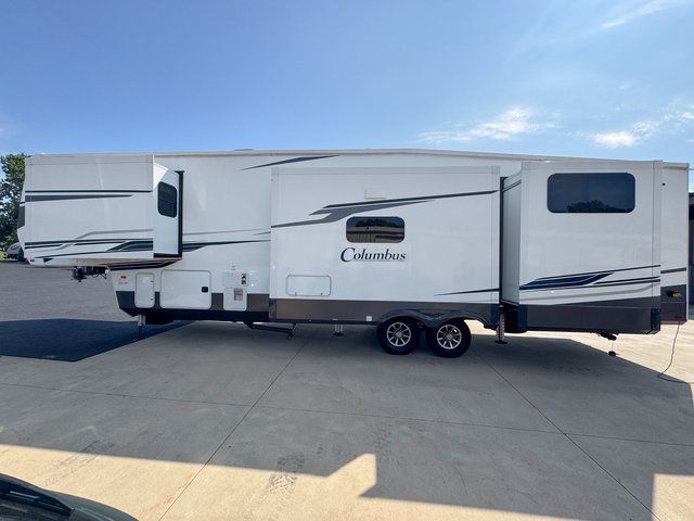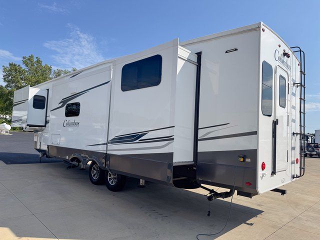 Experience a different camping life with residential furnishings and high end features in each one of these Palomino Columbus fifth wheels! The 101" wide body lets you walk around more throughout and the all-welded aluminum-frame superstructure has a snap-in ceiling molding to hold up through every adventure. Don't leave any of your gear behind either when you can easily store it in the climate controlled drop frame storage area. On the exterior, you'll find a heated utility convenience center, an outside sprayer to keep the dirt outside where it belongs, and magnetic compartment door holds to keep them from falling on you as you grab your items. Plus, there are some modern features that will really seal the deal like the Wi-Fi Booster with 4G LTE capability prep, upgraded true solid-surface countertops, power theater seating with USB charging, and a 260W solar panel for off-grid camping!