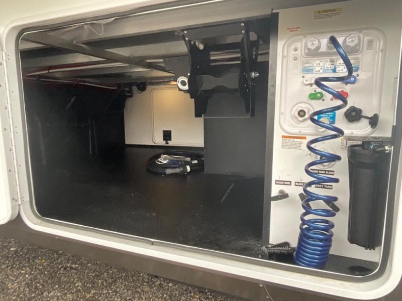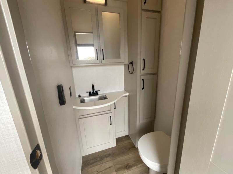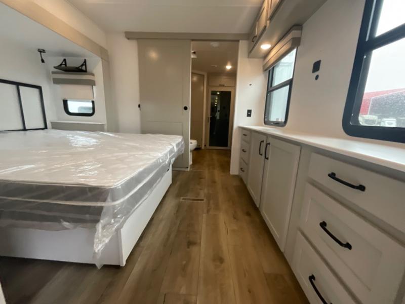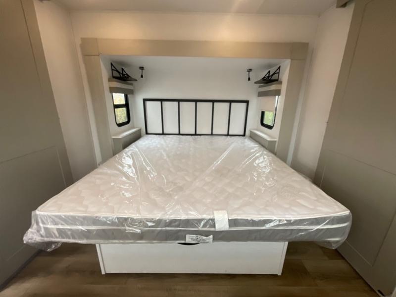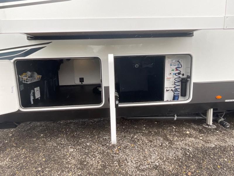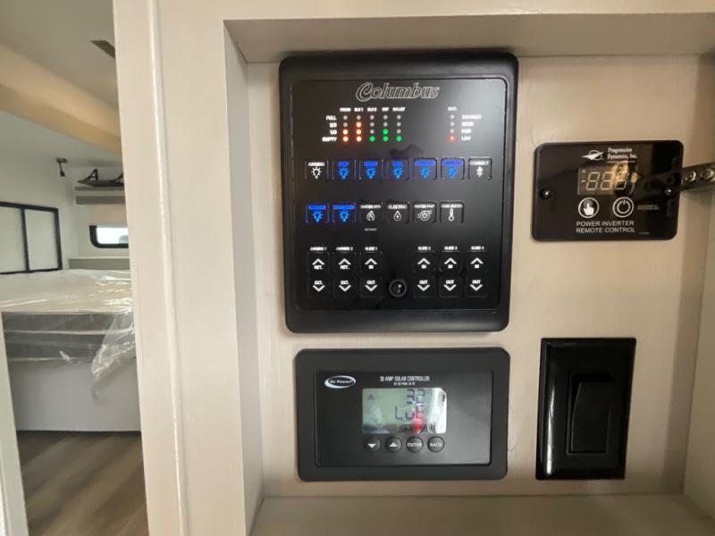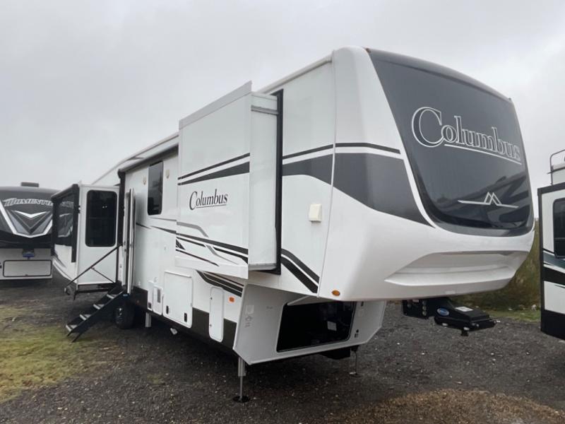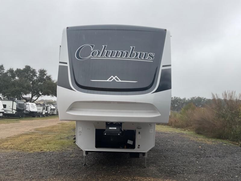 Experience a different camping life with residential furnishings and high end features in each one of these Palomino Columbus fifth wheels! The 101" wide body lets you walk around more throughout and the all-welded aluminum-frame superstructure has a snap-in ceiling molding to hold up through every adventure. Don't leave any of your gear behind either when you can easily store it in the climate controlled drop frame storage area. On the exterior, you'll find a heated utility convenience center, an outside sprayer to keep the dirt outside where it belongs, and magnetic compartment door holds to keep them from falling on you as you grab your items. Plus, there are some modern features that will really seal the deal like the Wi-Fi Booster with 4G LTE capability prep, upgraded true solid-surface countertops, power theater seating with USB charging, and a 260W solar panel for off-grid camping!