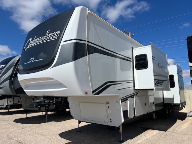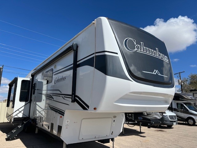 Experience a different camping life with residential furnishings and high end features in each one of these Palomino Columbus fifth wheels! The 101" wide body lets you walk around more throughout and the all-welded aluminum-frame superstructure has a snap-in ceiling molding to hold up through every adventure. Don't leave any of your gear behind either when you can easily store it in the climate controlled drop frame storage area. On the exterior, you'll find a heated utility convenience center, an outside sprayer to keep the dirt outside where it belongs, and magnetic compartment door holds to keep them from falling on you as you grab your items. Plus, there are some modern features that will really seal the deal like the Wi-Fi Booster with 4G LTE capability prep, upgraded true solid-surface countertops, power theater seating with USB charging, and a 260W solar panel for off-grid camping!