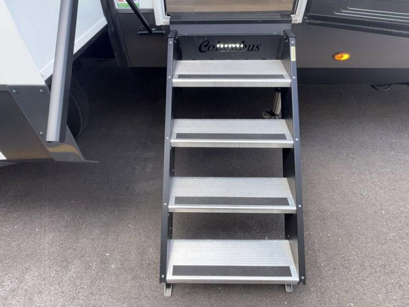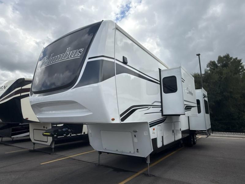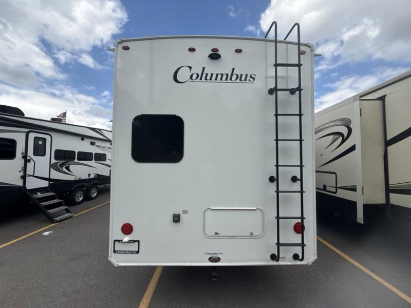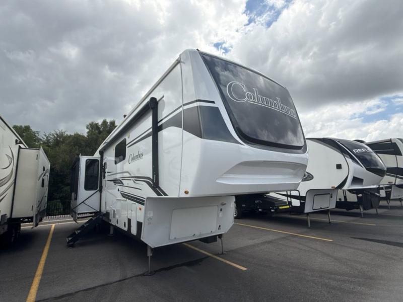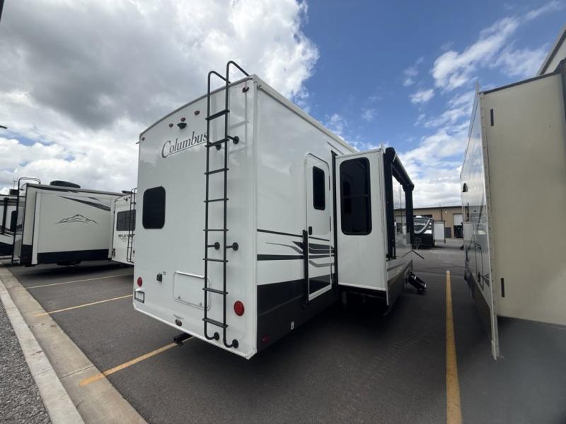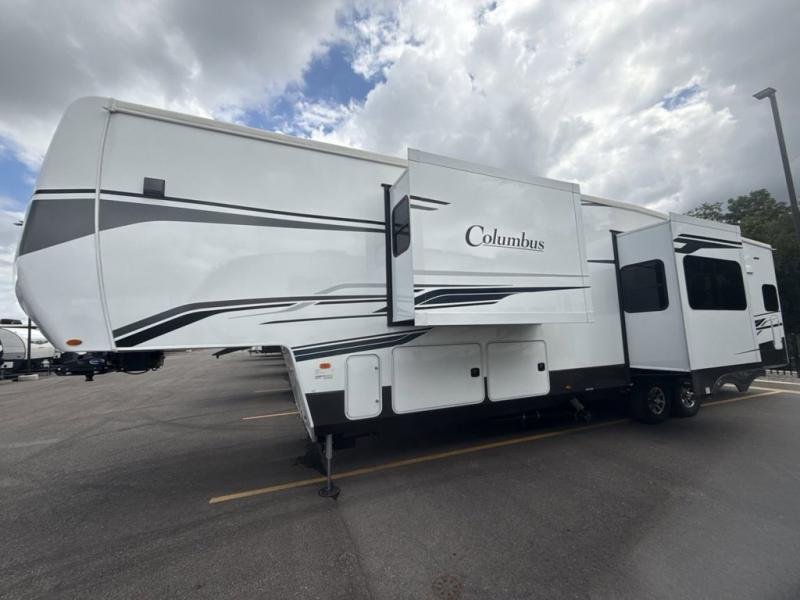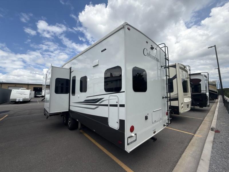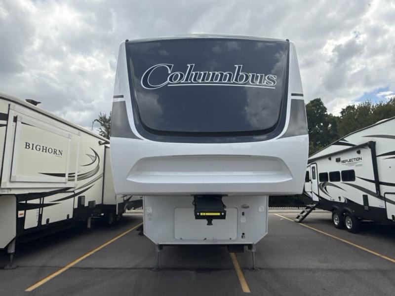 Experience a different camping life with residential furnishings and high end features in each one of these Palomino Columbus fifth wheels! The 101" wide body lets you walk around more throughout and the all-welded aluminum-frame superstructure has a snap-in ceiling molding to hold up through every adventure. Don't leave any of your gear behind either when you can easily store it in the climate controlled drop frame storage area. On the exterior, you'll find a heated utility convenience center, an outside sprayer to keep the dirt outside where it belongs, and magnetic compartment door holds to keep them from falling on you as you grab your items. Plus, there are some modern features that will really seal the deal like the Wi-Fi Booster with 4G LTE capability prep, upgraded true solid-surface countertops, power theater seating with USB charging, and a 260W solar panel for off-grid camping!