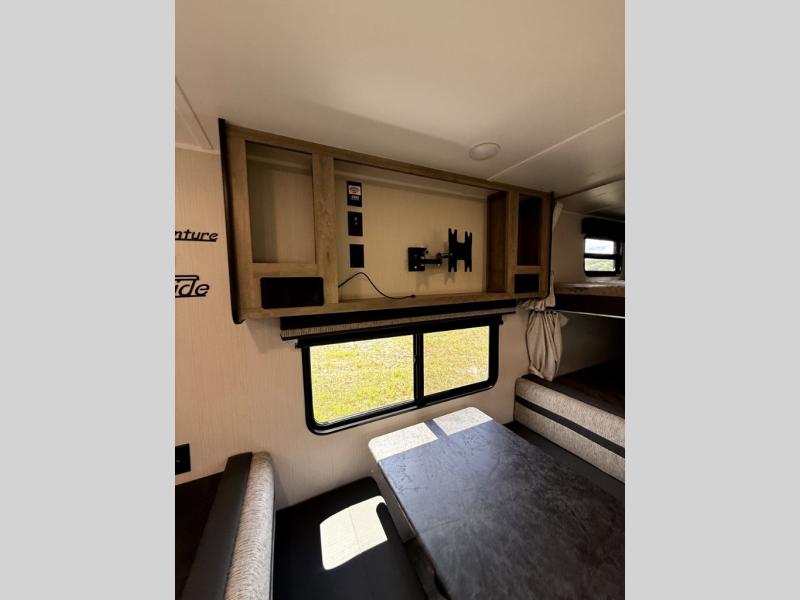 If you're looking for family-fun adventures then you need one of these Palomino Puma fifth wheels or travel trailers! They are built rugged, easy to tow, and jam packed with features. The Darco wrapped underbelly will protect your units vitals through every season and the AlphaPly roofing membrane covers it. They also have super lube axles and a powder coated frame. Their luxurious interiors feature a spice rack and built-in knife rack in the kitchen, USB charging ports to keep your electronics at 100%, and high density foam mattresses for a good night's rest. The required Advantage package comes with night roller shades for privacy, two outside speakers to crank up the tunes while you play cornhole, and an outside shower to keep the dirt outside where it belongs, plus so much more!