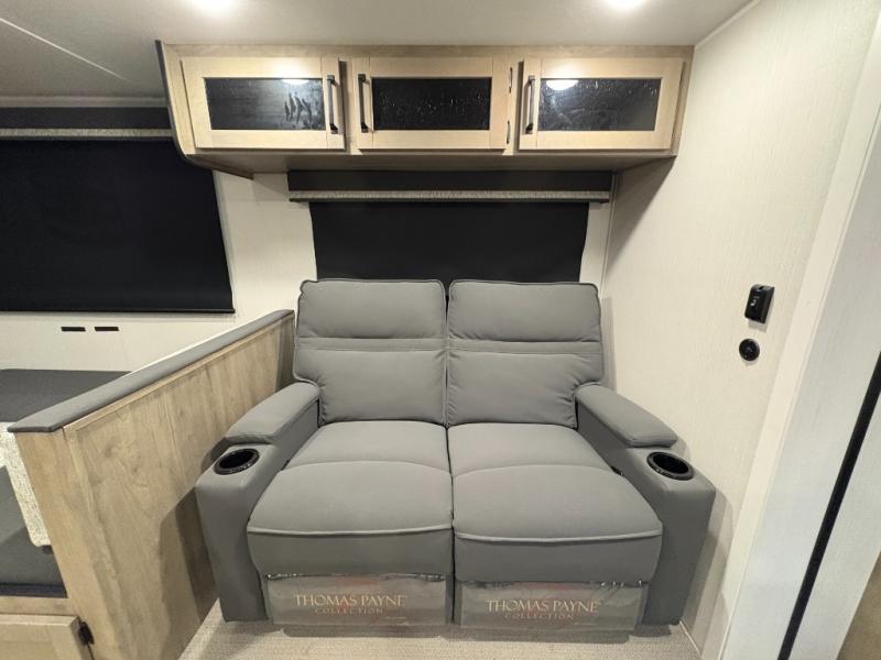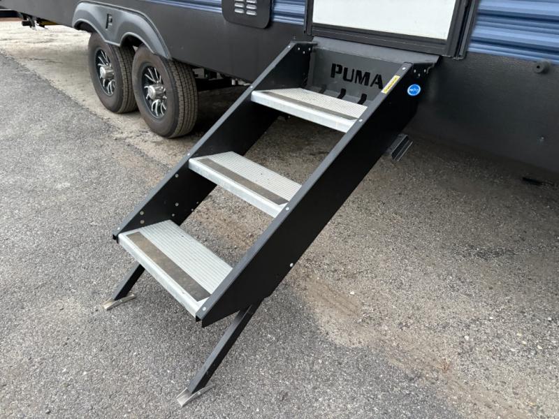 If you're looking for family-fun adventures then you need one of these Palomino Puma fifth wheels or travel trailers! They are built rugged, easy to tow, and jam packed with features. The Darco wrapped underbelly will protect your units vitals through every season and the AlphaPly roofing membrane covers it. They also have super lube axles and a powder coated frame. Their luxurious interiors feature a spice rack and built-in knife rack in the kitchen, USB charging ports to keep your electronics at 100%, and high density foam mattresses for a good night's rest. The required Advantage package comes with night roller shades for privacy, two outside speakers to crank up the tunes while you play cornhole, and an outside shower to keep the dirt outside where it belongs, plus so much more!