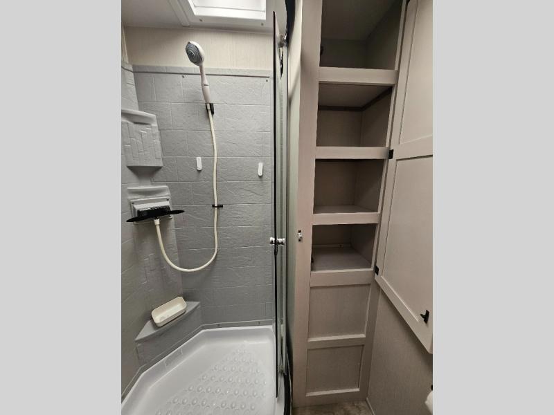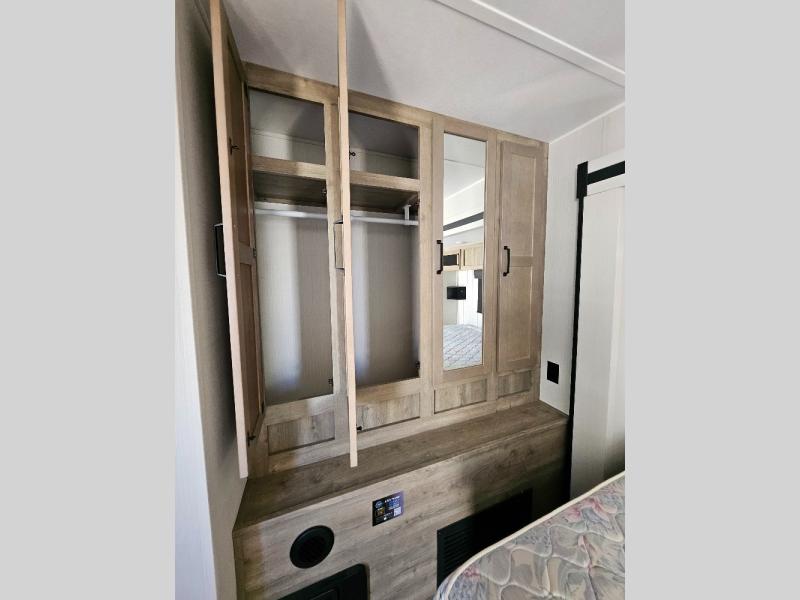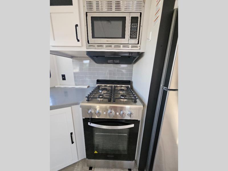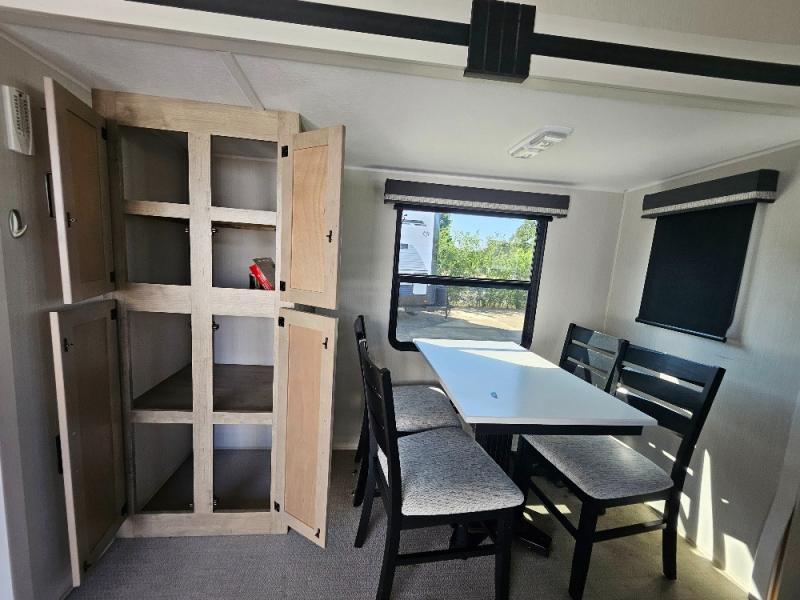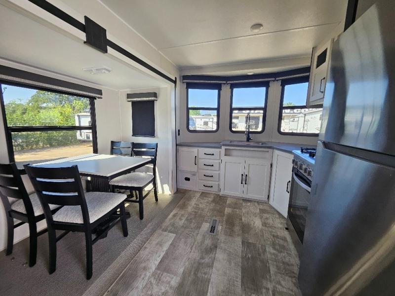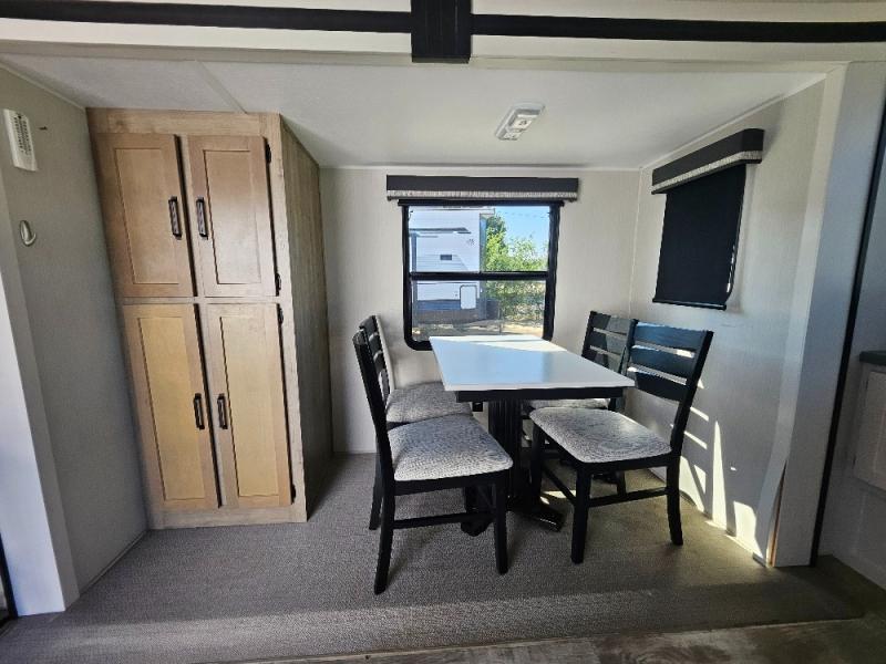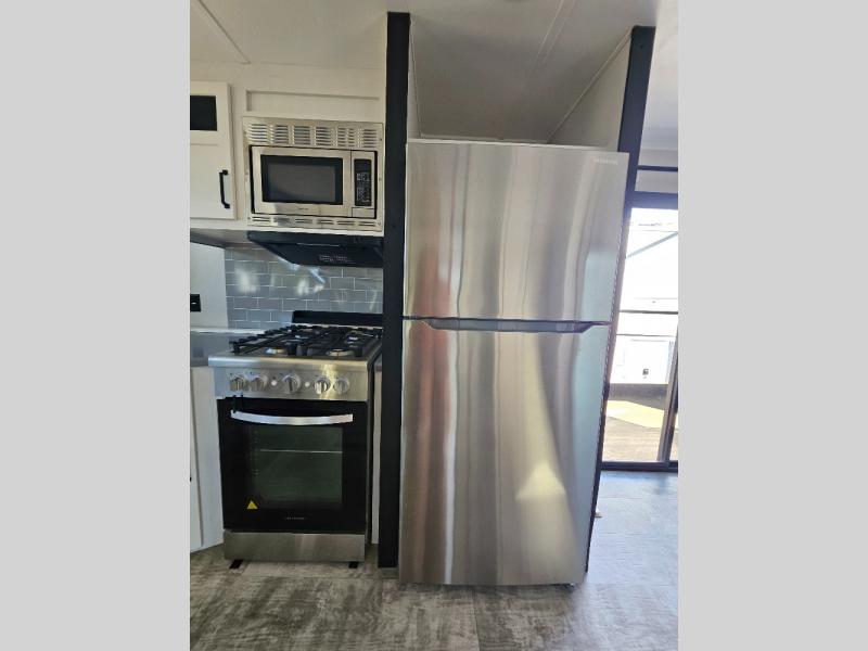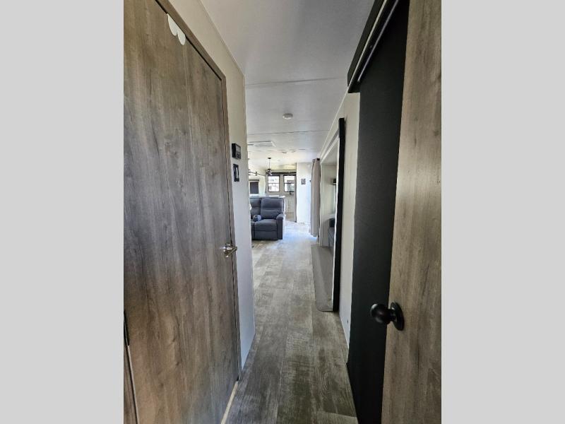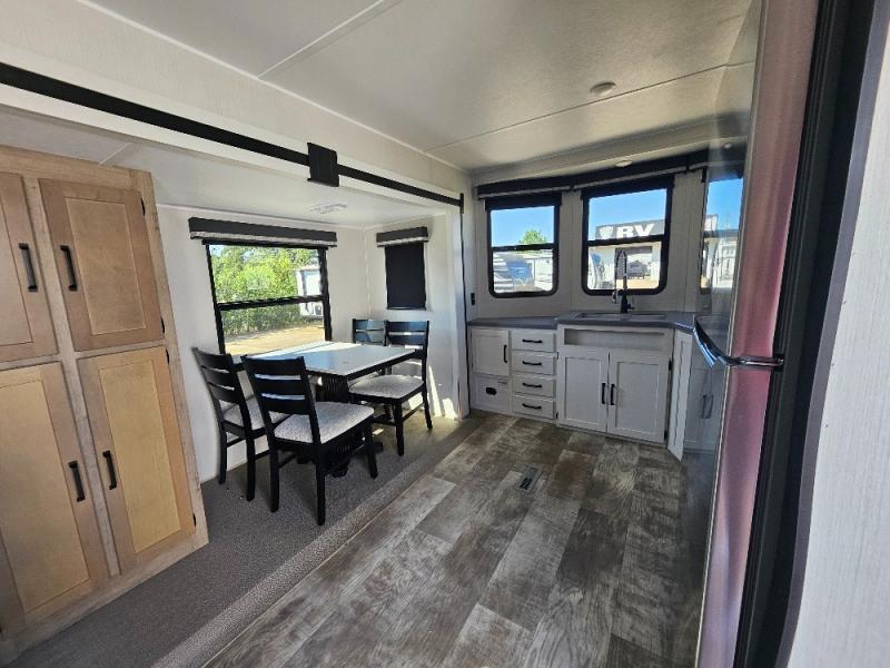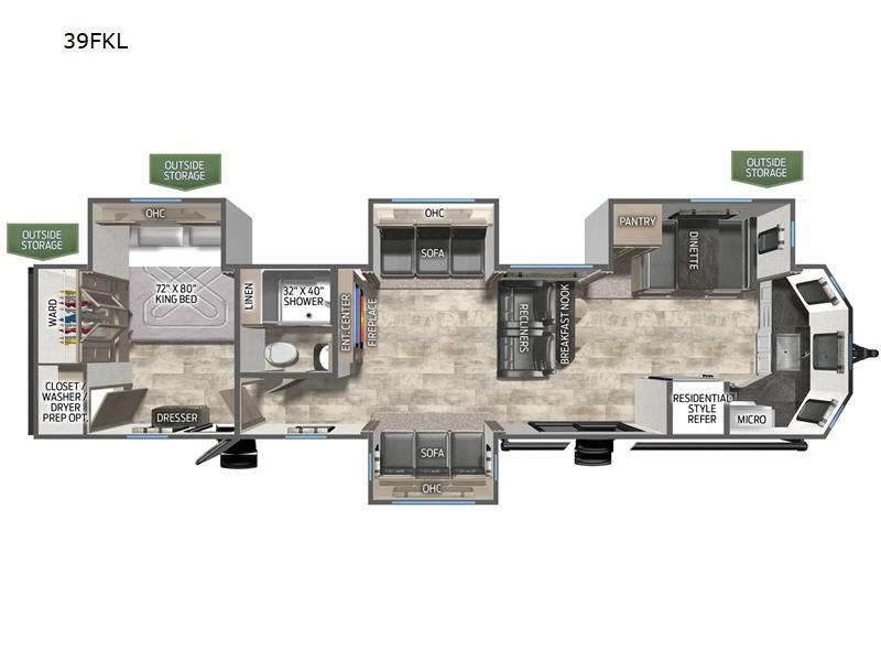 If you are looking for your own space in your next destination trailer, you have found it! With a front separate kitchen, a middle separate living area, a full bathroom and a rear bedroom, you can call one of these spaces your own. The cook will love the front counter space and appliances, and you can dine at the booth dinette or the breakfast nook. Someone can be visiting with friends and family while sitting on the two sofa slides or the two recliners, while another is getting ready in the full bathroom. You will sleep soundly on the king bed slide out, and the closet with washer and dryer prep will make full-time RV living easier than ever.