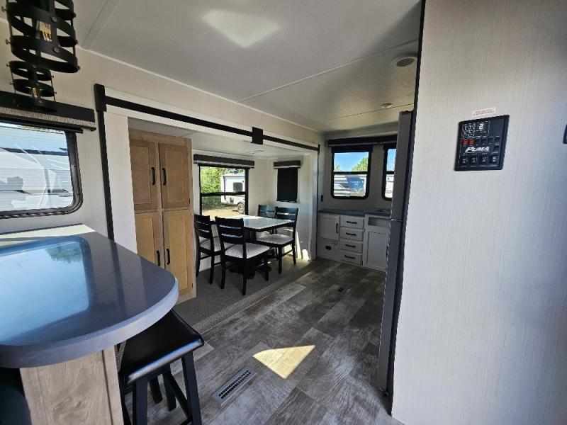 Each Puma Destination trailer by Palomino is designed to give you unforgettable getaways to the destination of your choice! The AlphaPly roofing membrane and powder coated frames are what make these models ultra durable, and the super lube axles will provide smooth towing from home to campground. The Value Shopper Package includes Beauflor linoleum, an AM/FM/Bluetooth stereo, a high-rise faucet with a sprayer, bedroom TV hook-up, and many many more conveniences. You'll find the designer window treatments in the living room and decorative kitchen backsplash will make your space feel more like home, plus there are USB charging ports for your electronics and plenty of storage space for all your belongings. And you can add the optional Marquis Edition Package that includes an outside shower, a solid surface countertop, two exterior speakers, and more features that will add to your comfort!