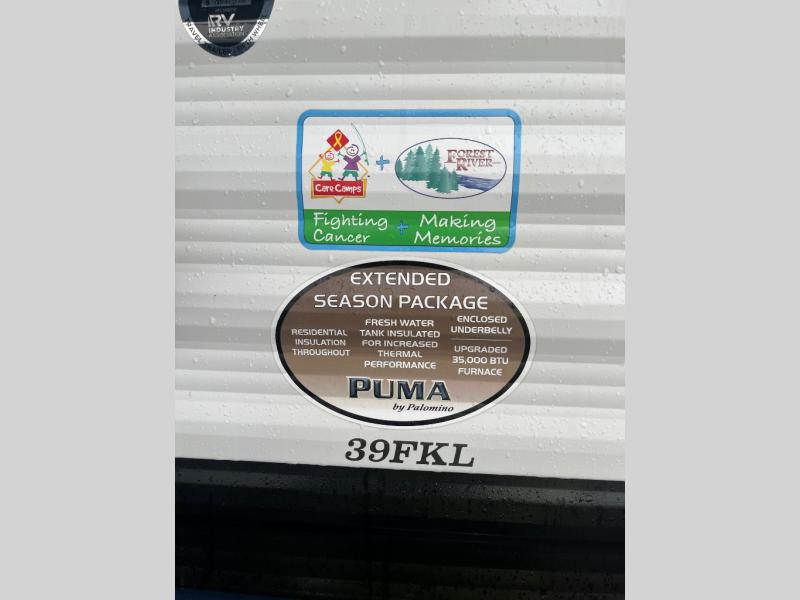 Each Puma Destination trailer by Palomino is designed to give you unforgettable getaways to the destination of your choice! The AlphaPly roofing membrane and powder coated frames are what make these models ultra durable, and the super lube axles will provide smooth towing from home to campground. The Value Shopper Package includes Beauflor linoleum, an AM/FM/Bluetooth stereo, a high-rise faucet with a sprayer, bedroom TV hook-up, and many many more conveniences. You'll find the designer window treatments in the living room and decorative kitchen backsplash will make your space feel more like home, plus there are USB charging ports for your electronics and plenty of storage space for all your belongings. And you can add the optional Marquis Edition Package that includes an outside shower, a solid surface countertop, two exterior speakers, and more features that will add to your comfort!