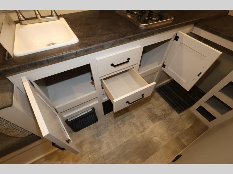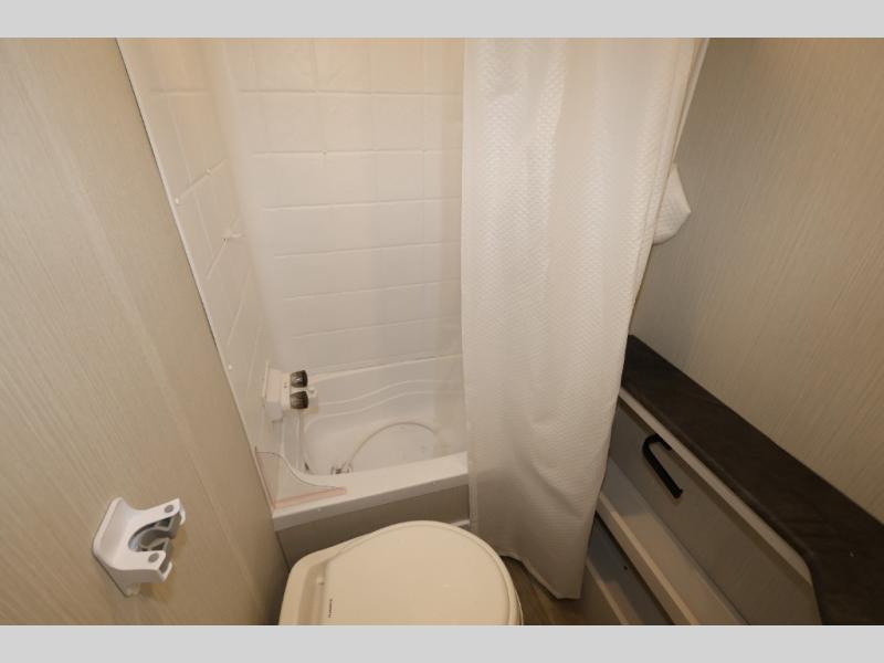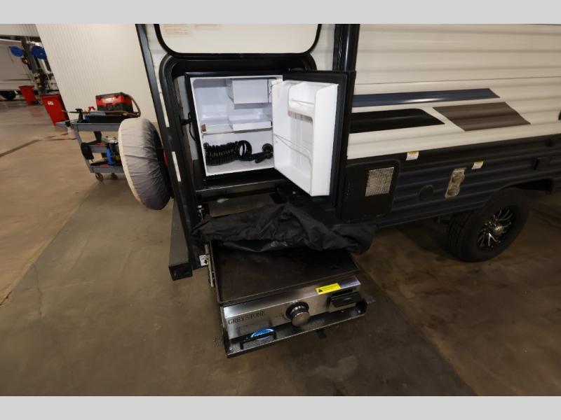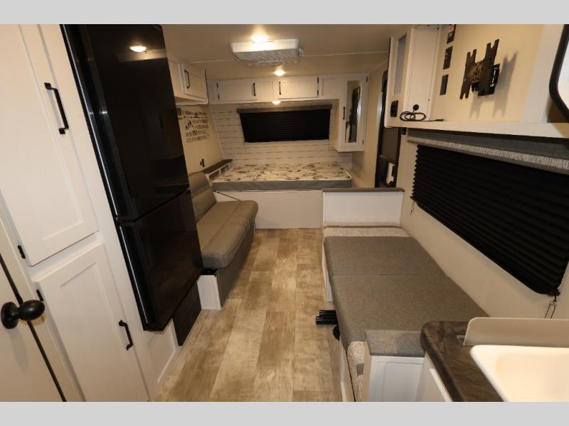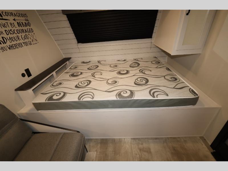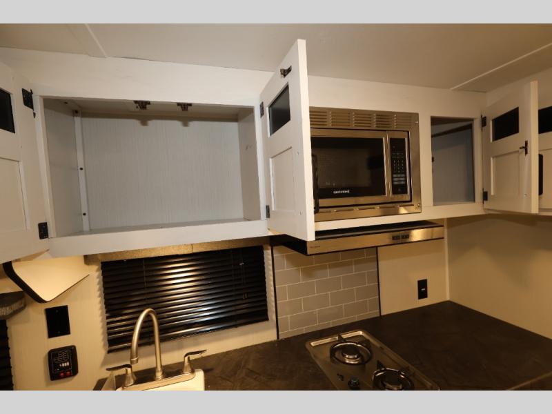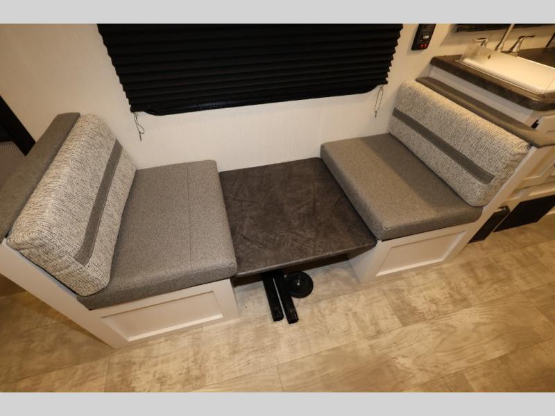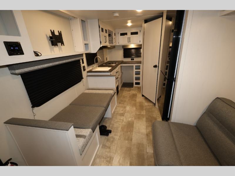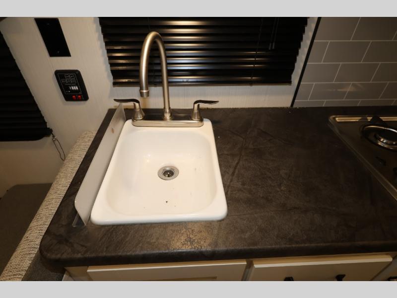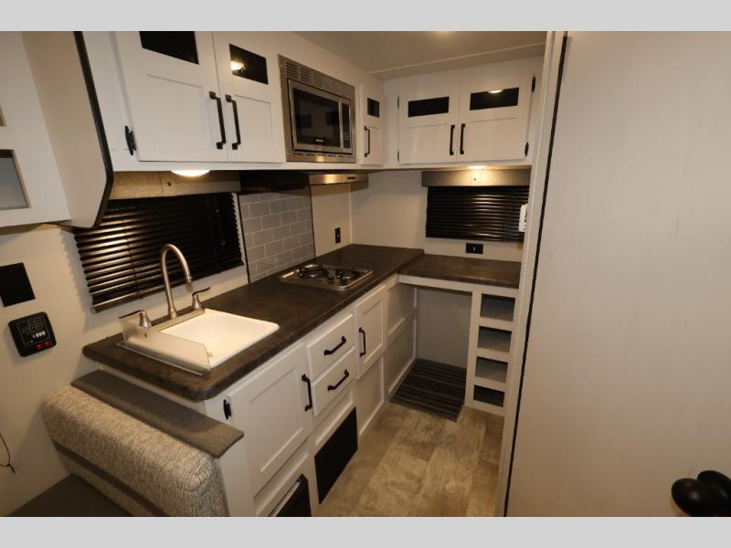 You and your spouse will love camping in this 8' wide single axle travel trailer! Start your mornings feeling refreshed after sleeping on the front 60" x 74" queen bed with a shirt closet at the foot. You could even transform the sofa and booth dinette into extra sleeping spaces when you aren't using it to enjoy a delicious home cooked meal with the two burner cooktop. If you choose to add the optional outside micro kitchen with a griddle and refrigerator then you can enjoy some fresh air while cooking dinner. After a fun day at the beach, you can head to the rear corner bathroom and rinse the sand out of your hair in the 24" x 38" tub!